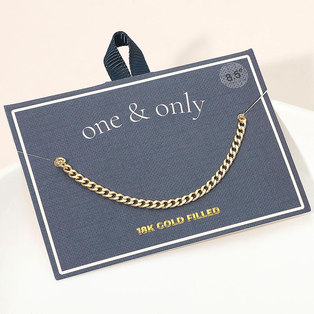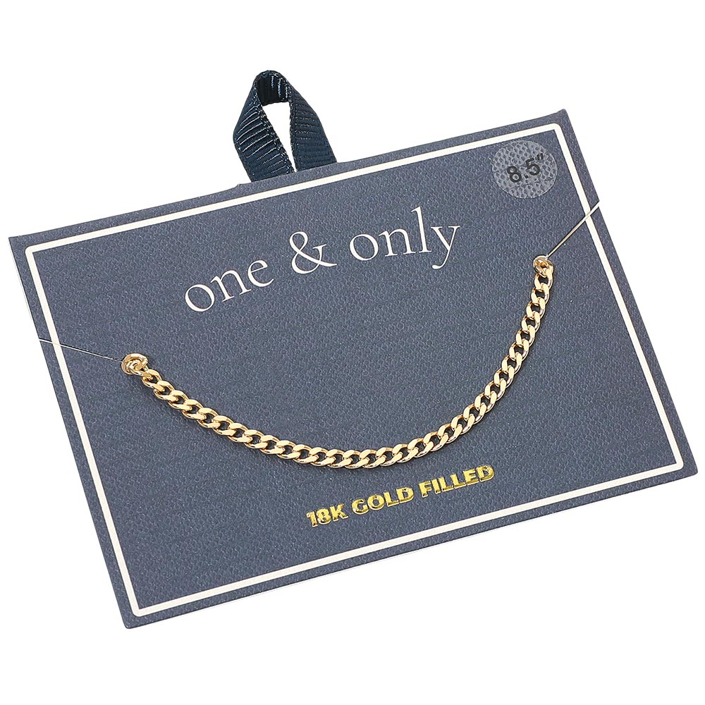 Details • Size : 0.1" H (3mm), 8.5" L • Lobster Clasp • Timeless Cuban chain anklet featuring smooth flat links with a sleek polished shine. Its classic design offers effortless sophistication, perfect for daily wear or layering with other pieces. A versatile accessory that adds a refined touch to any modern or classic look. • Gold Filled • Lead and Nickel Compliant • Made In Brazil