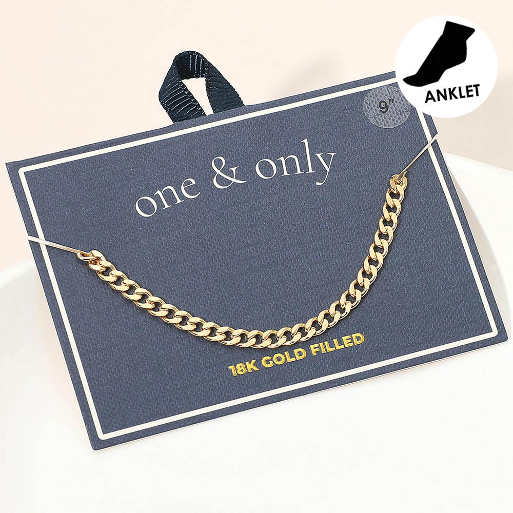 Details • Size : 0.2" H (4mm), 9" L • Lobster Clasp • Timeless Cuban chain anklet featuring smooth flat links with a sleek polished shine. Its classic design offers effortless sophistication, perfect for daily wear or layering with other pieces. A versatile accessory that adds a refined touch to any modern or classic look. • Gold Filled • Lead and Nickel Compliant • Made In Brazil