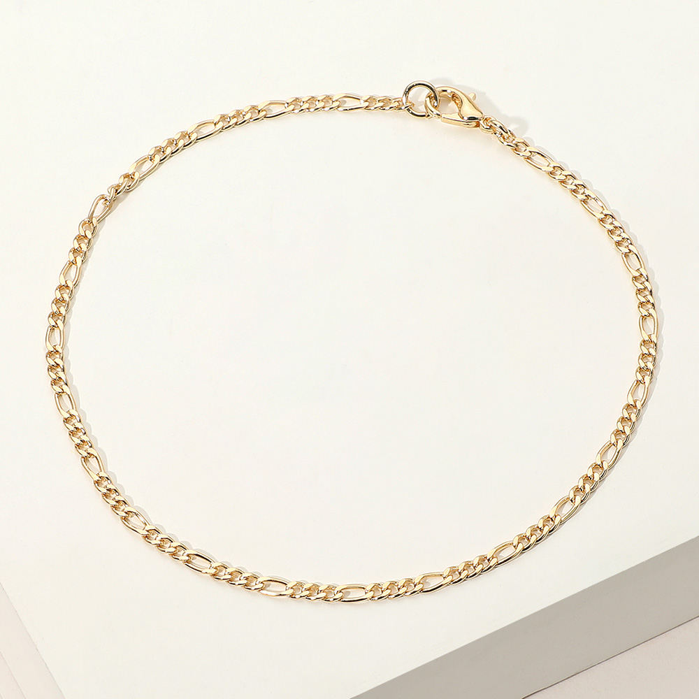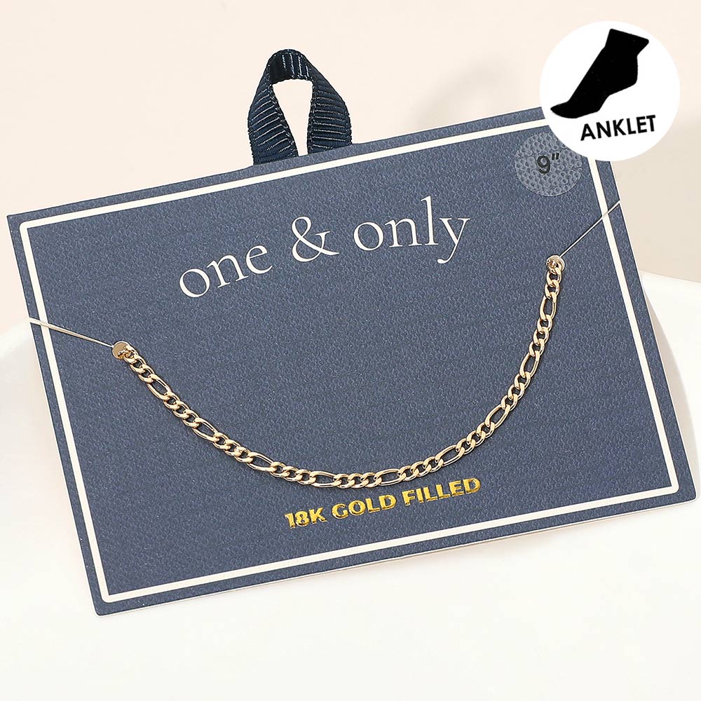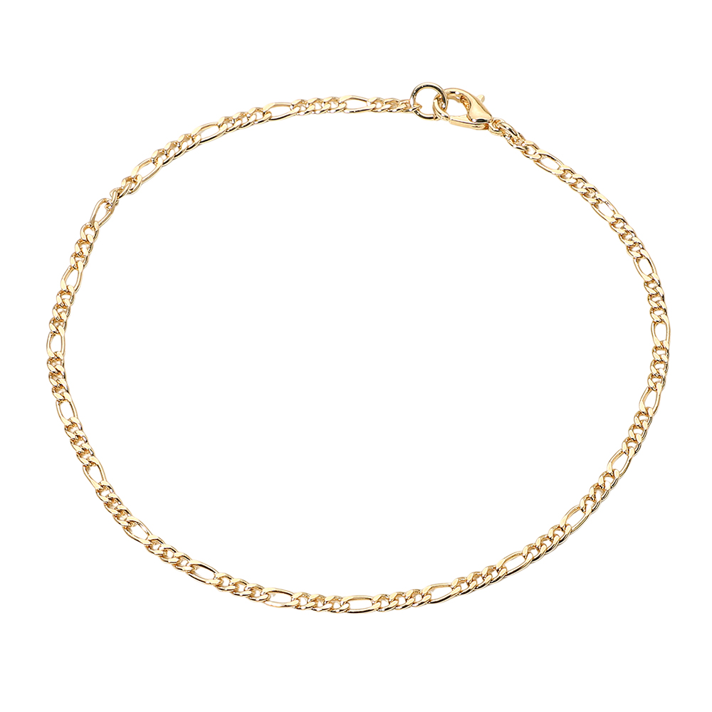 Details • Size : 0.1" H (2mm), 9" L • Lobster Clasp Closure • Classic figaro chain anklet designed with smooth, interlocking links for a timeless and polished look. Crafted for durability and shine, this 18K gold-filled anklet is perfect for daily wear or layering, adding effortless elegance to your casual or dressy outfits. • Gold Filled • Lead and Nickel Compliant • Made In Brazil