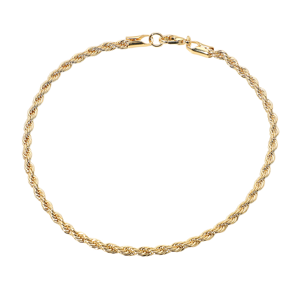 Details • Size : 0.1" H (3mm), 9" L • Lobster Clasp Closure • Elegant twisted rope chain anklet featuring a polished braided design that adds timeless shine and texture. Perfect for both casual and dressy looks, this anklet brings a touch of sophistication and effortless style to your everyday accessories collection. • Gold Filled • Lead and Nickel Compliant • Made In Brazil