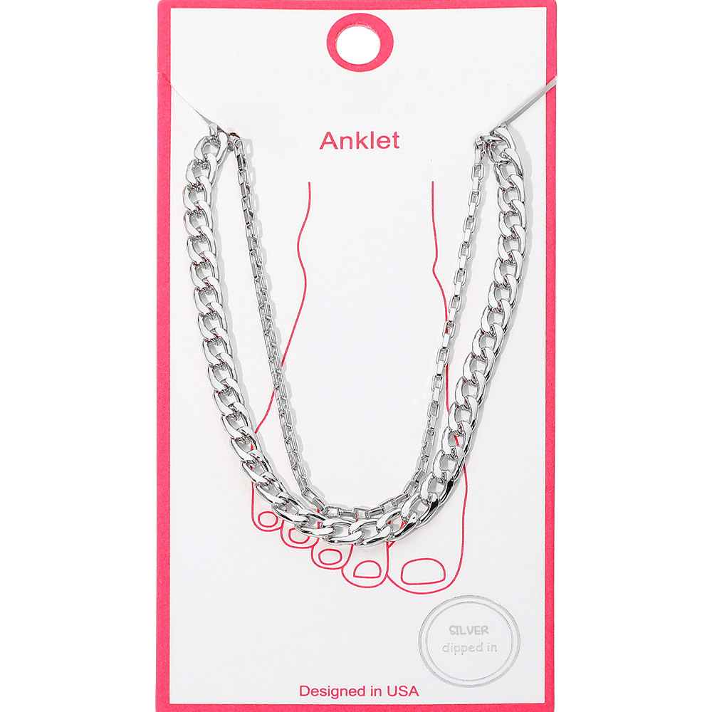 Details • Size : 0.25" H, 8" + 3.25" L • Lobster Clasp Closure • Trendy double chain anklet featuring a bold link design paired with a sleek secondary chain. Adds a stylish and edgy touch to any summer look, perfect for casual or dressy footwear pairings. • Lead and Nickel Compliant