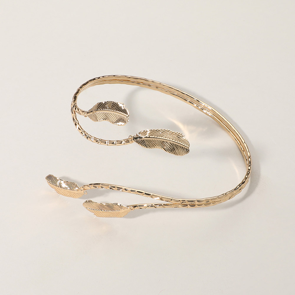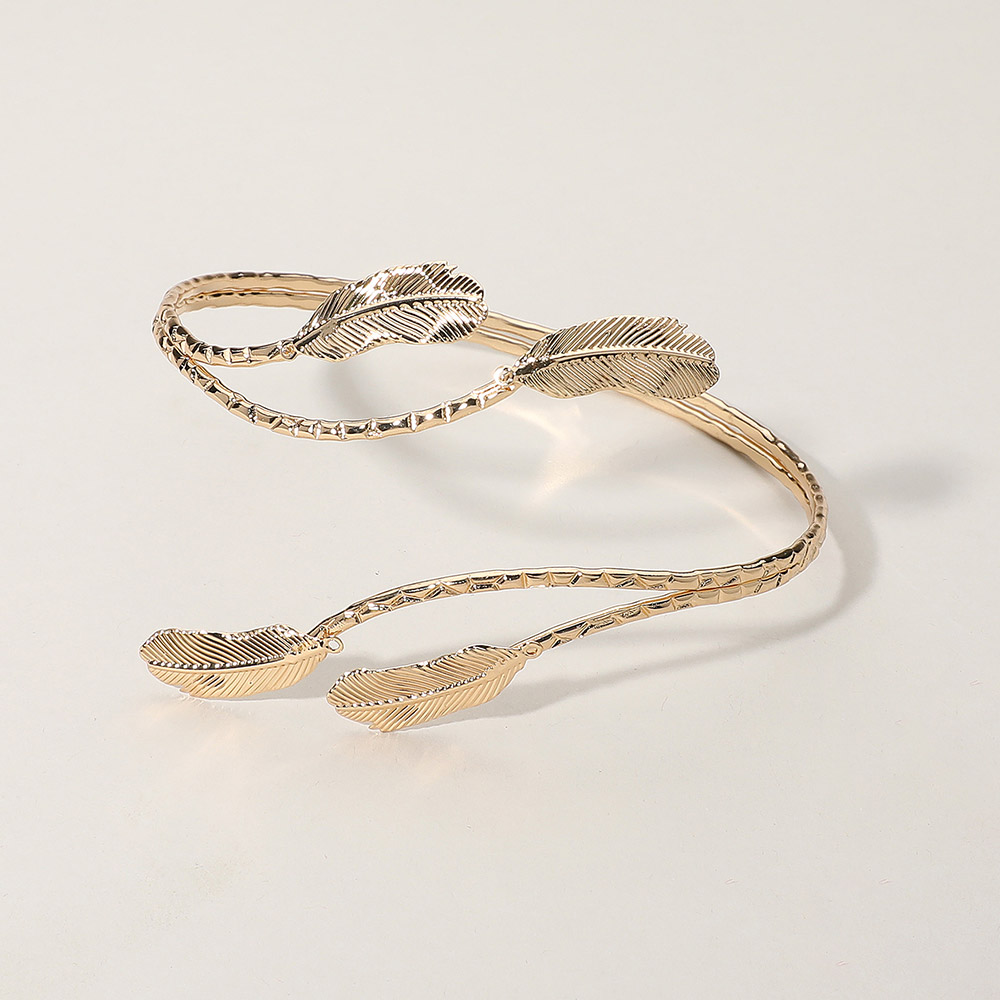 Textured Metal Leaf Tip Adjustable Arm Cuff Bracelet