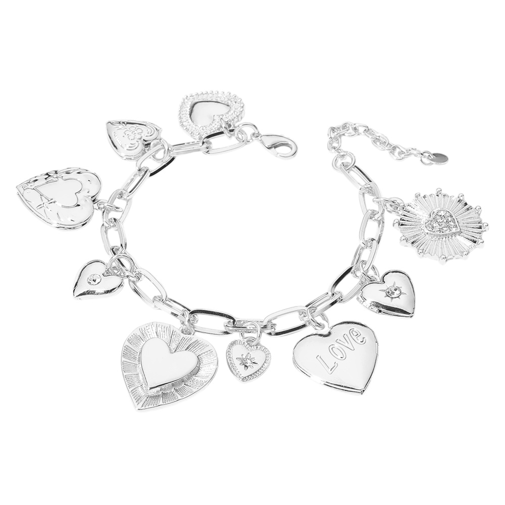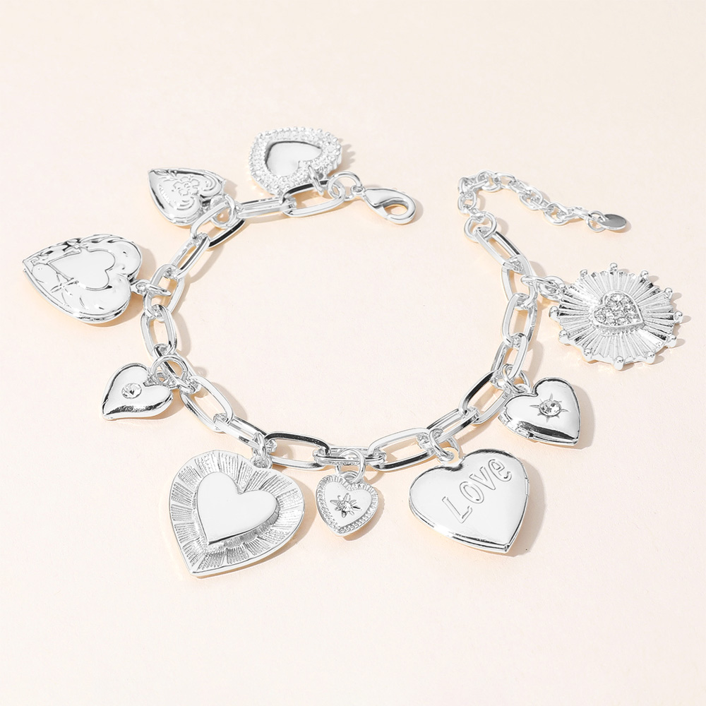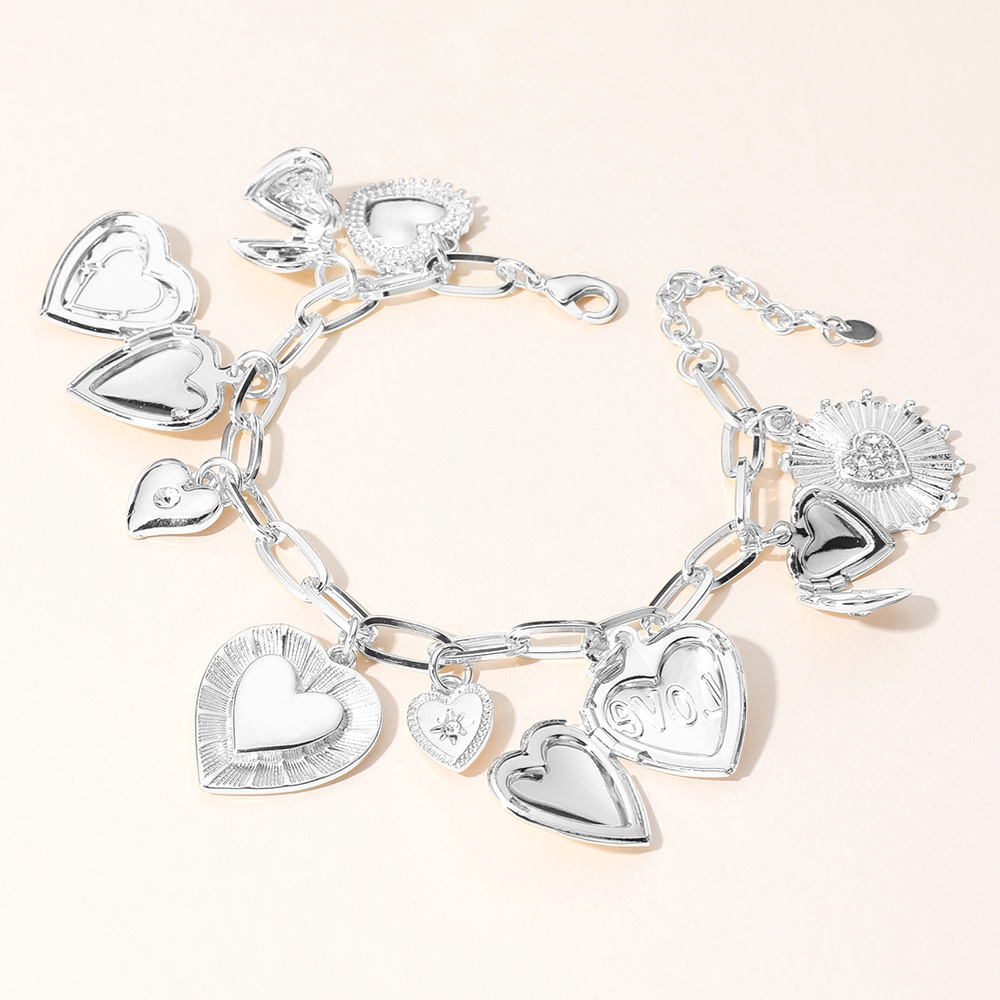 Heart Locket Charm Station Paperclip Chain Bracelet