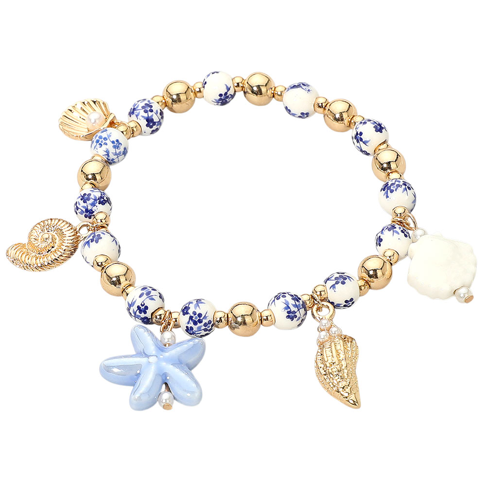 Details • Size : 0.25" H • Charm Size : 0.75" L • Stretchable • This ocean-inspired bracelet features seashell, starfish, and marine-themed charms paired with elegant beaded detailing. Its stretchable design ensures a comfortable fit, creating a stylish statement accessory perfect for beach days or adding a coastal touch to any outfit. • Lead and Nickel Compliant