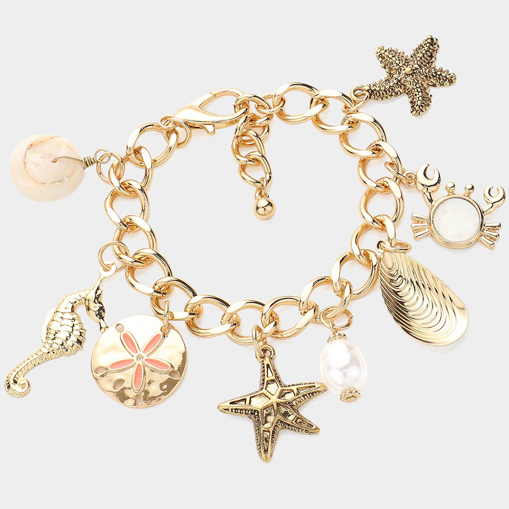 Seahorse Starfish Shell Sand Dollar Crab Charm Chunky Bracelet