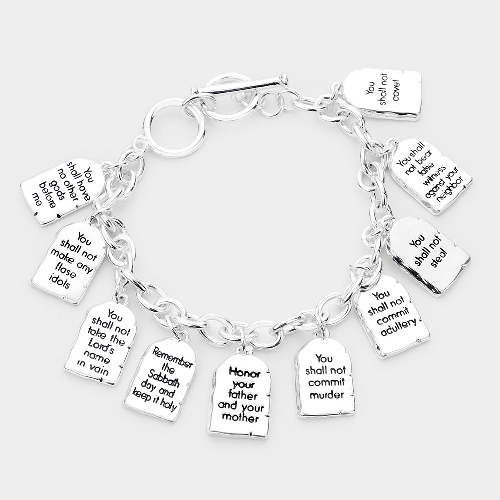 The Ten Commandments Metal Message Charm Toggle Bracelet