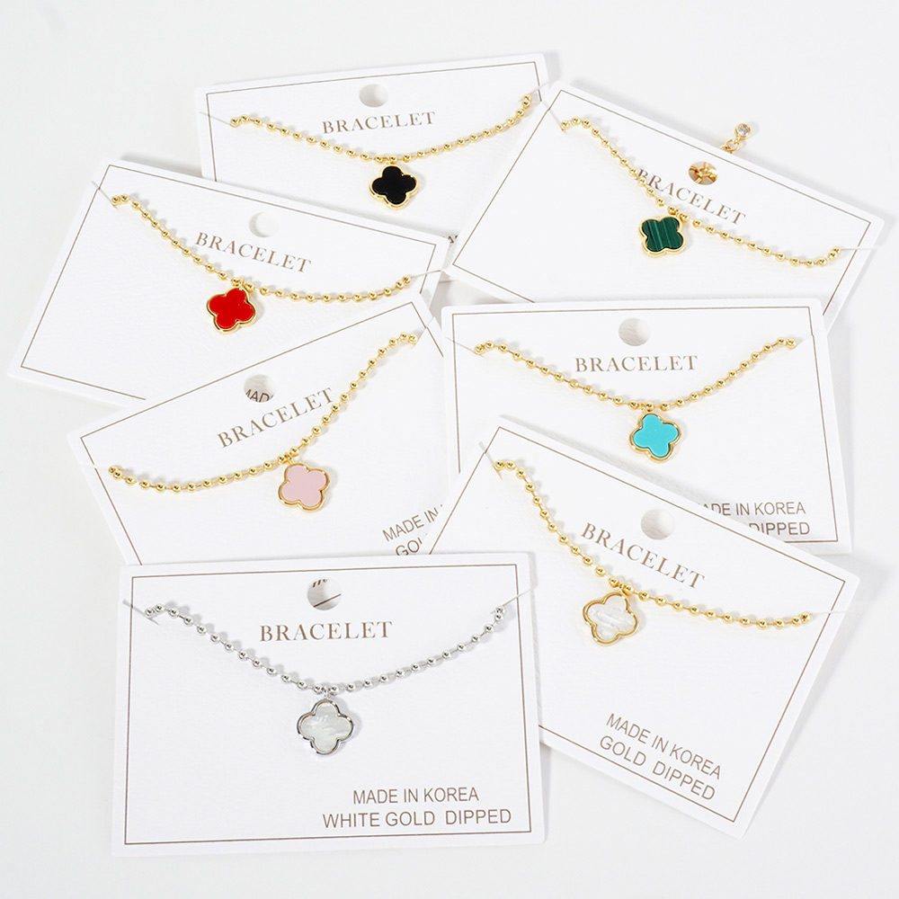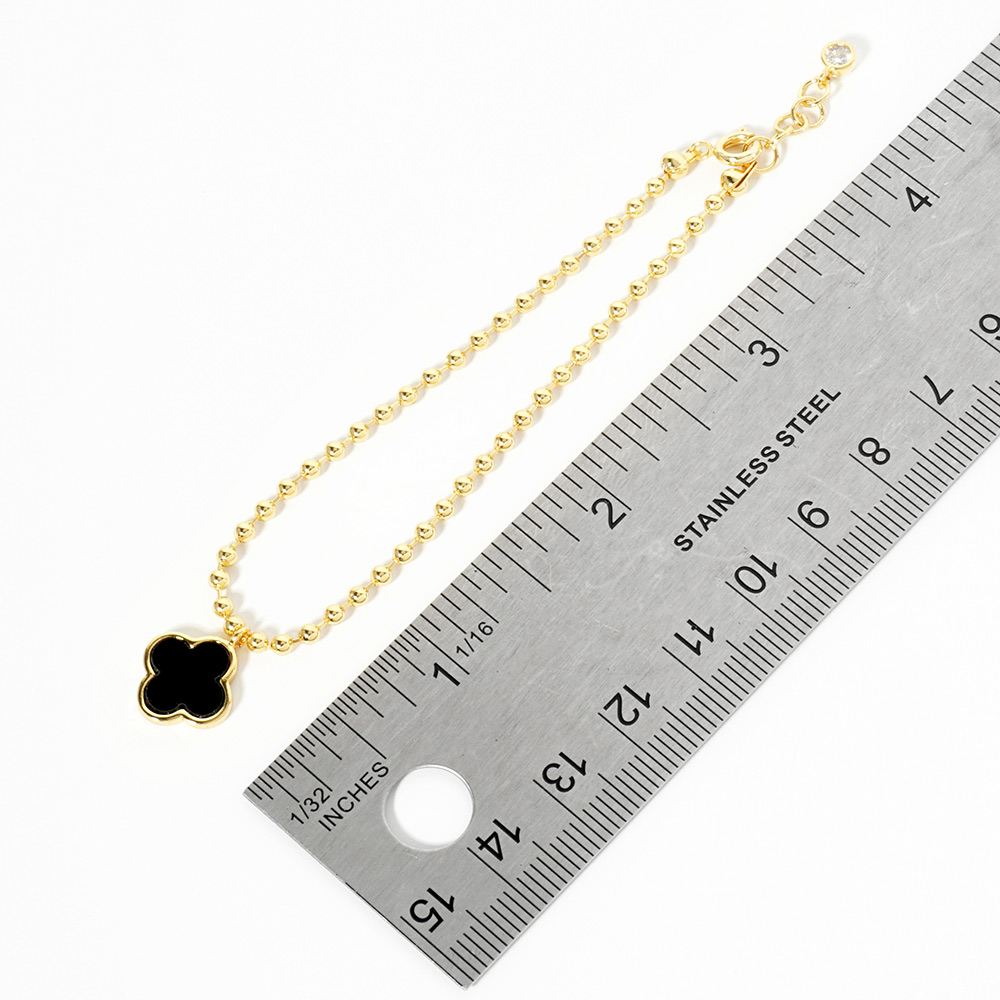 Gold Dipped Mother Of Pearl Quatrefoil Charm Bubble Chain Bracelet