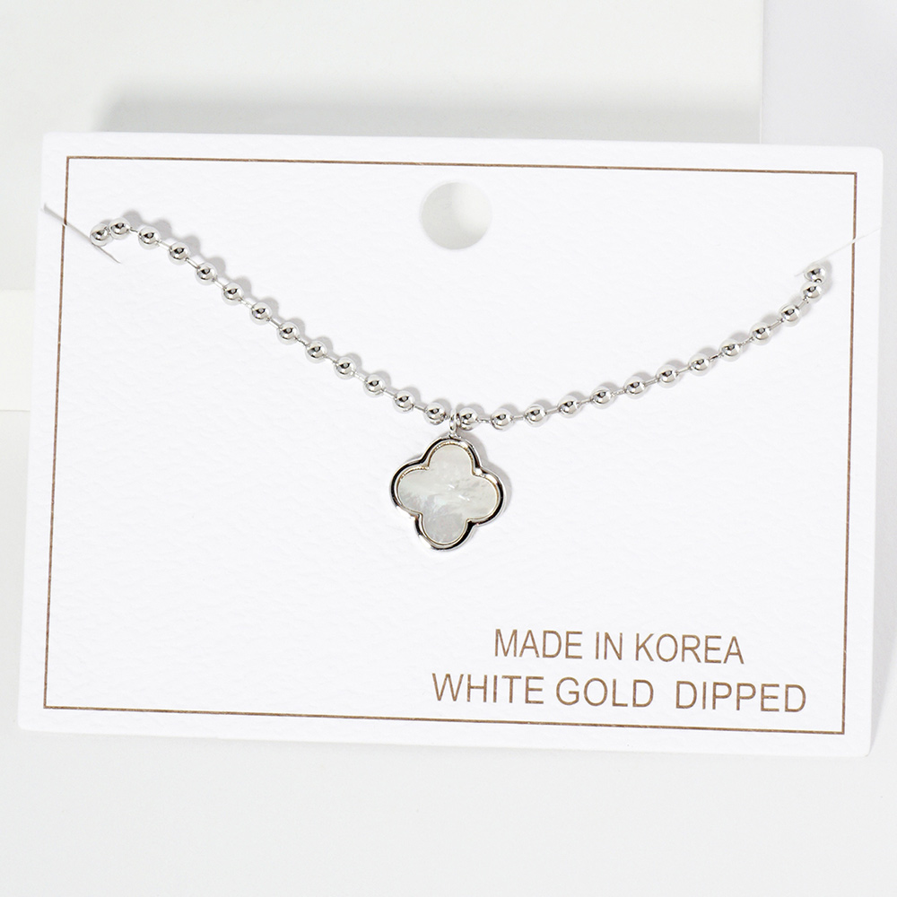 White Gold Dipped Mother Of Pearl Quatrefoil Pendant Bubble Chain Necklace