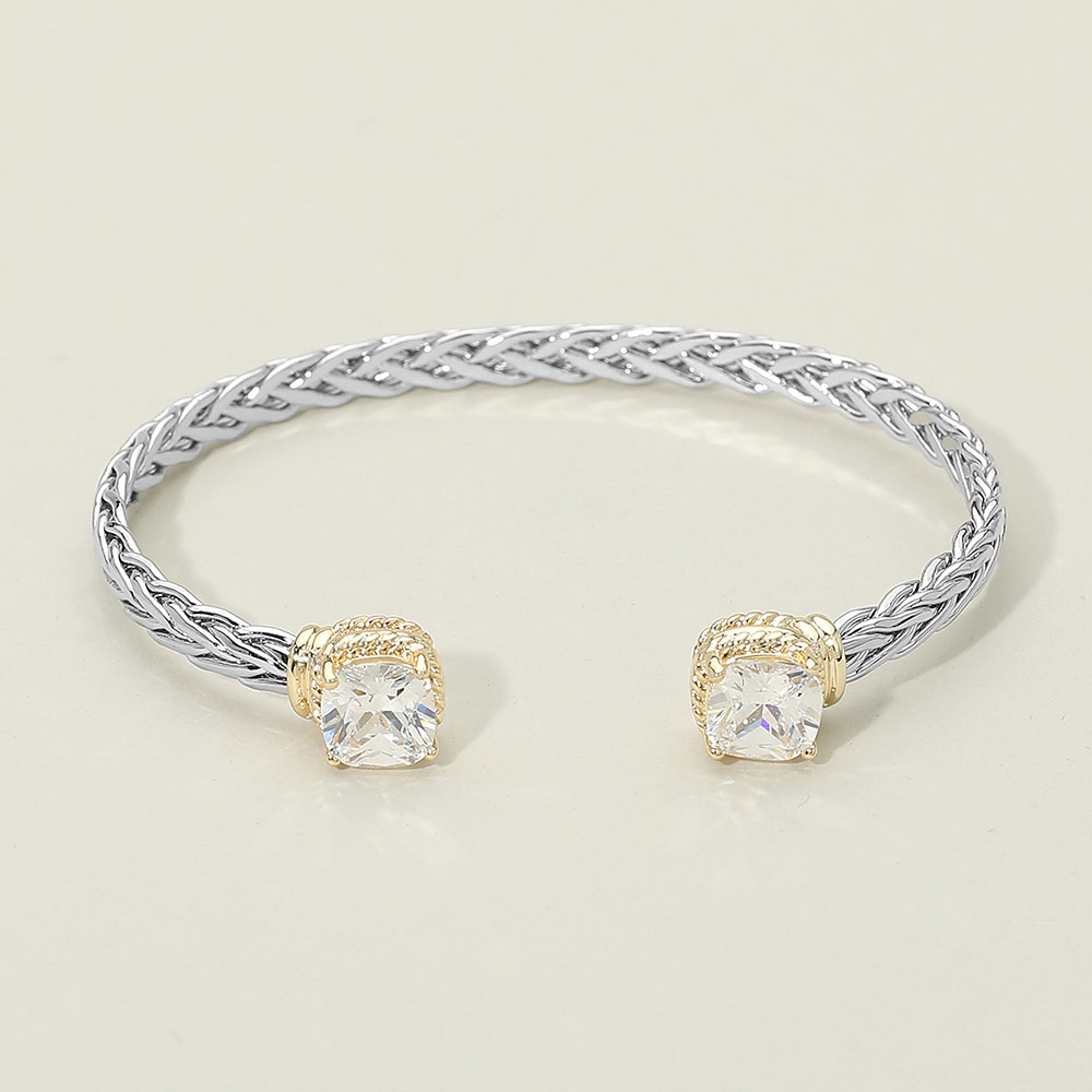 14K Gold Plated CZ Stone Tip Two Tone Braided Cuff Bracelet 14K Gold Plated CZ Stone Tip Two Tone Braided Cuff Bracelet 14K Gold Plated CZ Stone Tip Two Tone Braided Cuff Bracelet