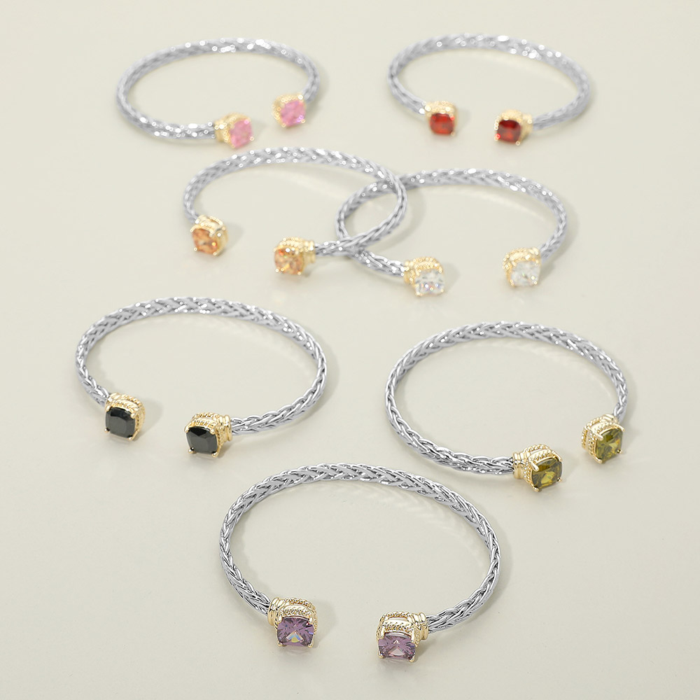 • Refined open cuff bracelet featuring a braided band and square crystal end details. Designed with a structured silhouette and elegant sparkle, this versatile accessory pairs effortlessly with casual or dress looks and layers beautifully with other bracelets for curated styling.