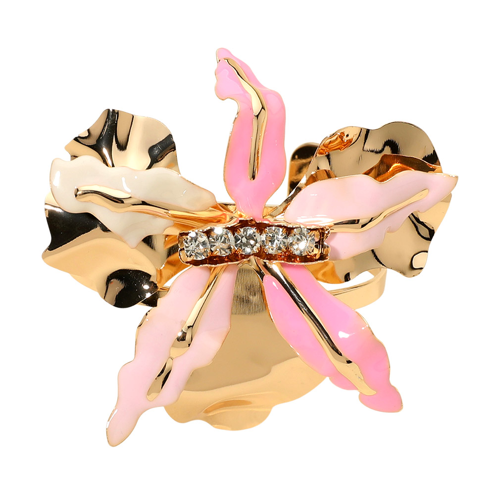• Elegant statement cuff bracelet featuring a sculptural floral design with a sparkling center accent. Designed to elevate everyday outfits or special occasion looks, this eye-catching accessory adds dimension, shine, and modern charm to any jewelry collection.