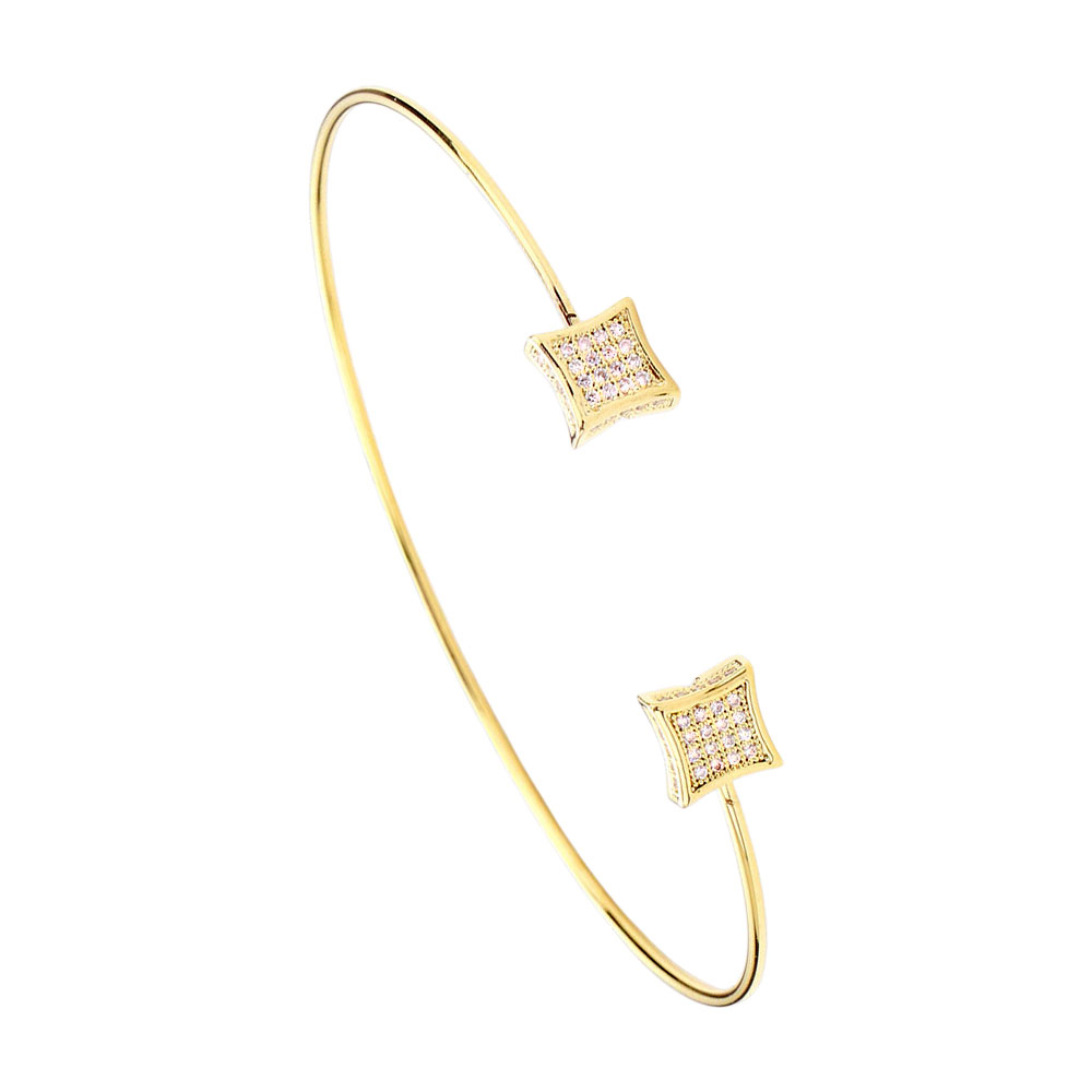 Brass Metal CZ Curved Square Tip Cuff Bracelet