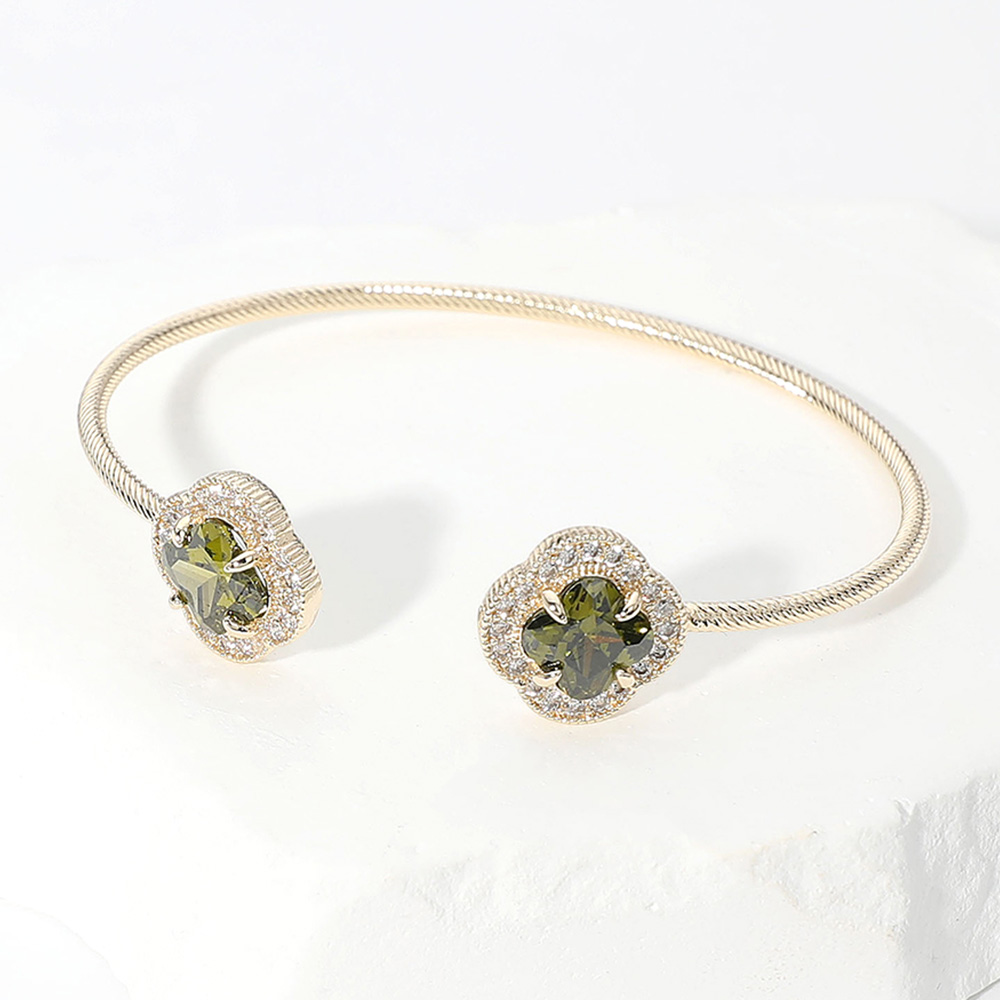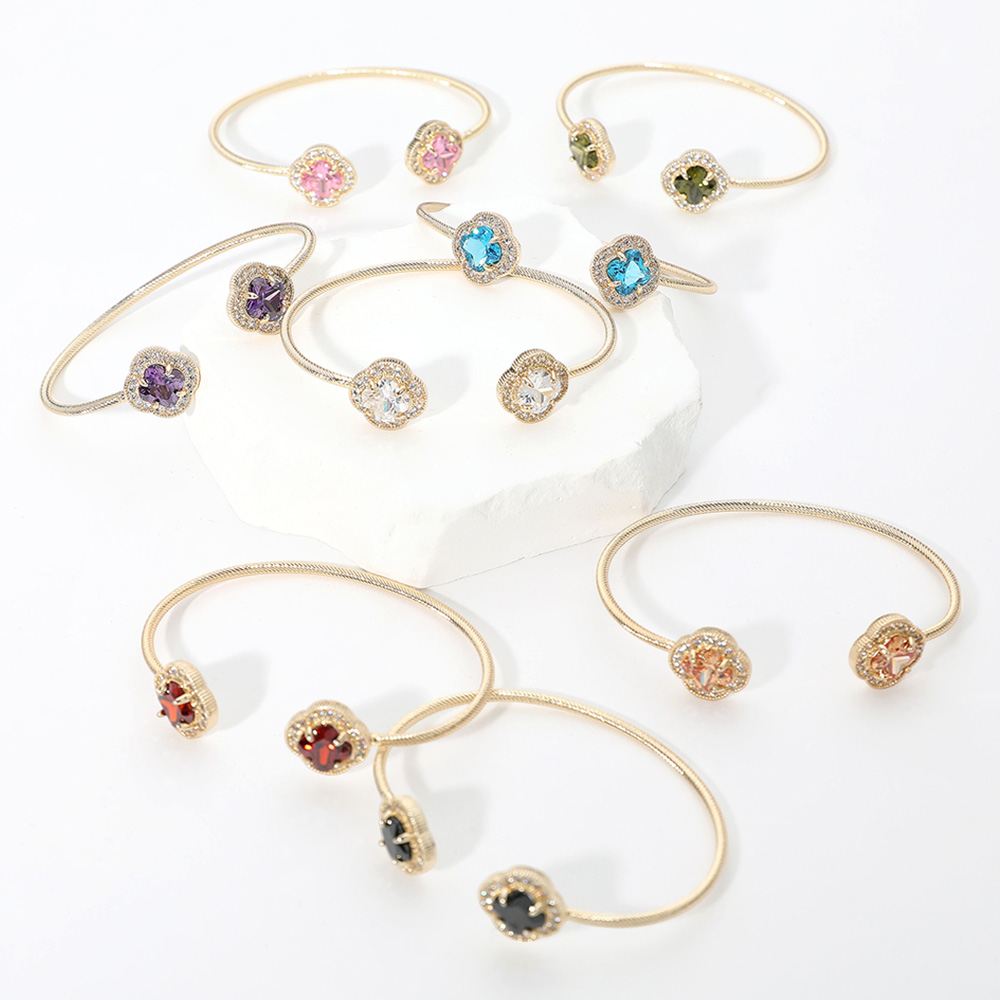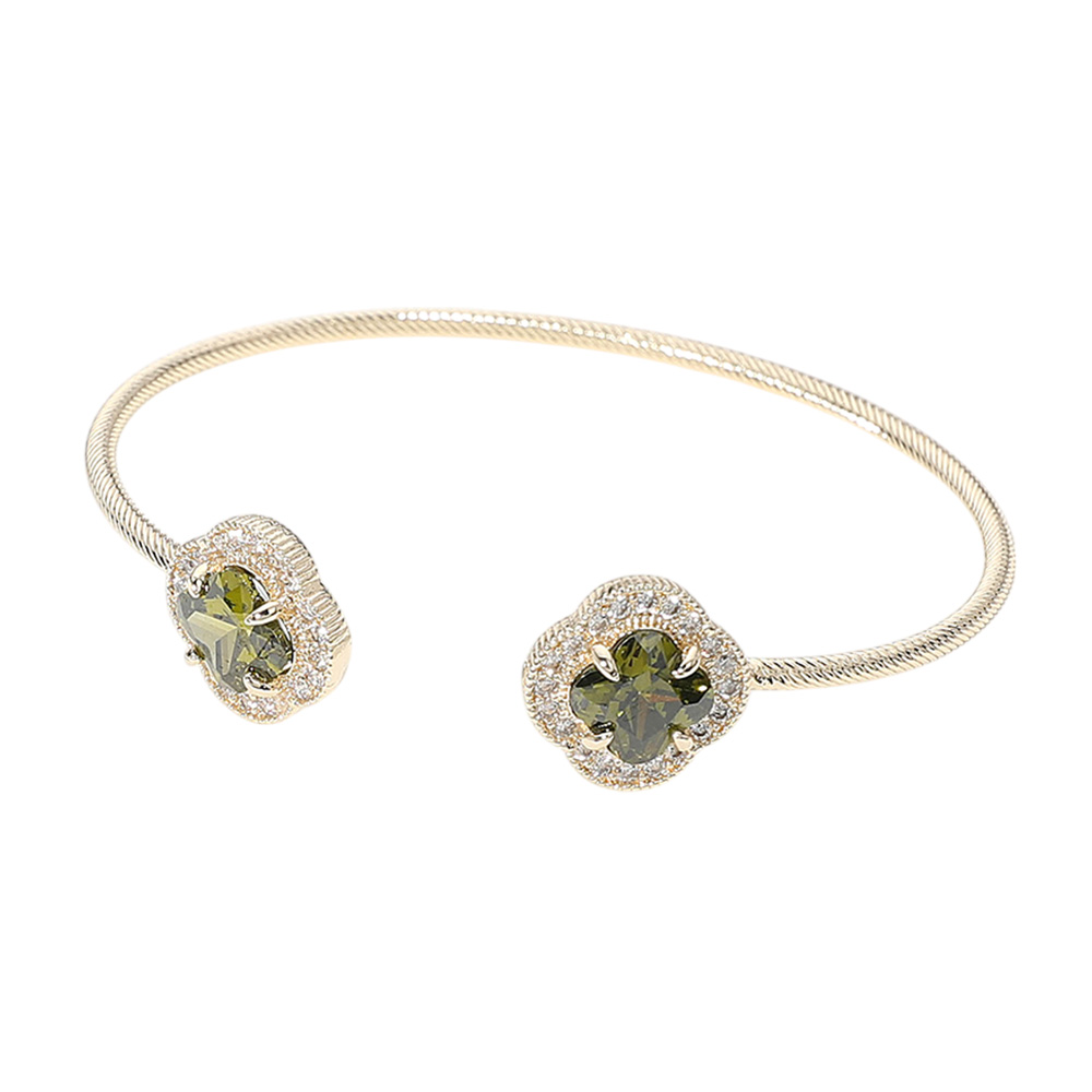 CZ Quatrefoil Stone Tip Cuff Bracelet