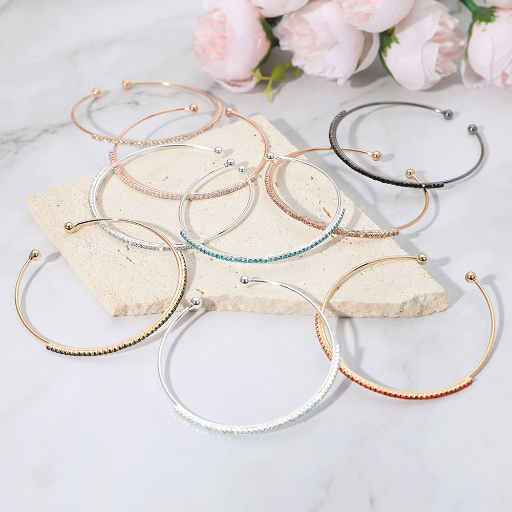 • Sleek and elegant cuff bracelet featuring a slim open bangle design adorned with shimmering cz crystals. Perfect for adding a subtle sparkle to any outfit, ideal for stacking or wearing alone for a refined look.