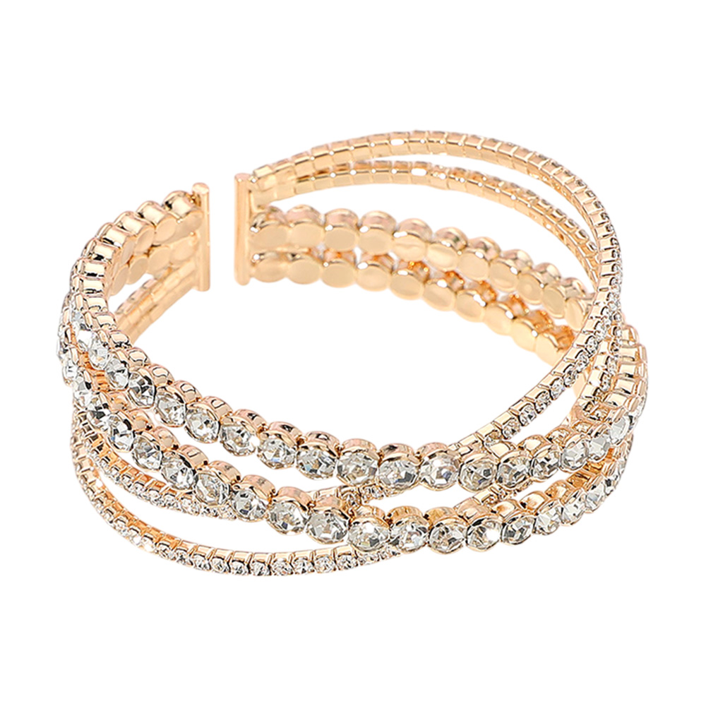 • Stylish cuff bracelet with layered rhinestone accents, designed to enhance formal and evening wear. A perfect accessory for weddings, galas, or any special occasion where you want to shine with refined elegance.