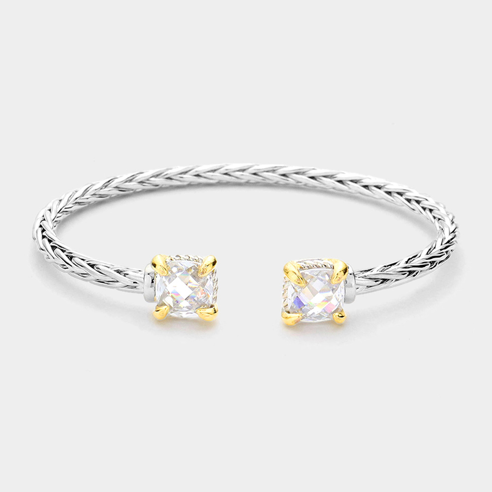 Square CZ Stone Cluster Tip Cuff Bracelet