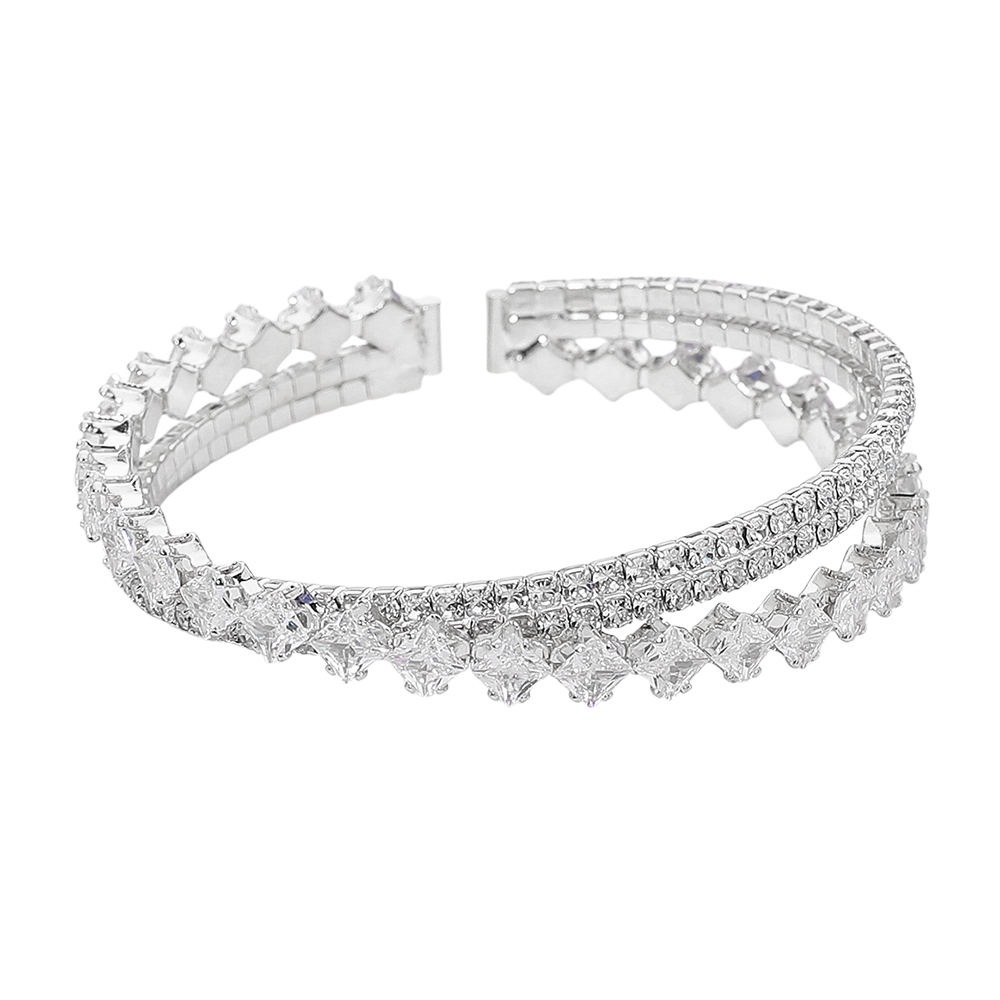 Square CZ Stone Dual Row Adjustable Evening Cuff Bracelet