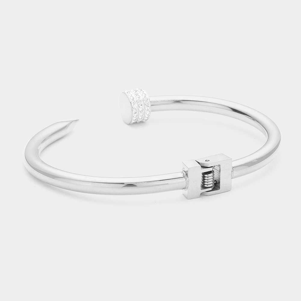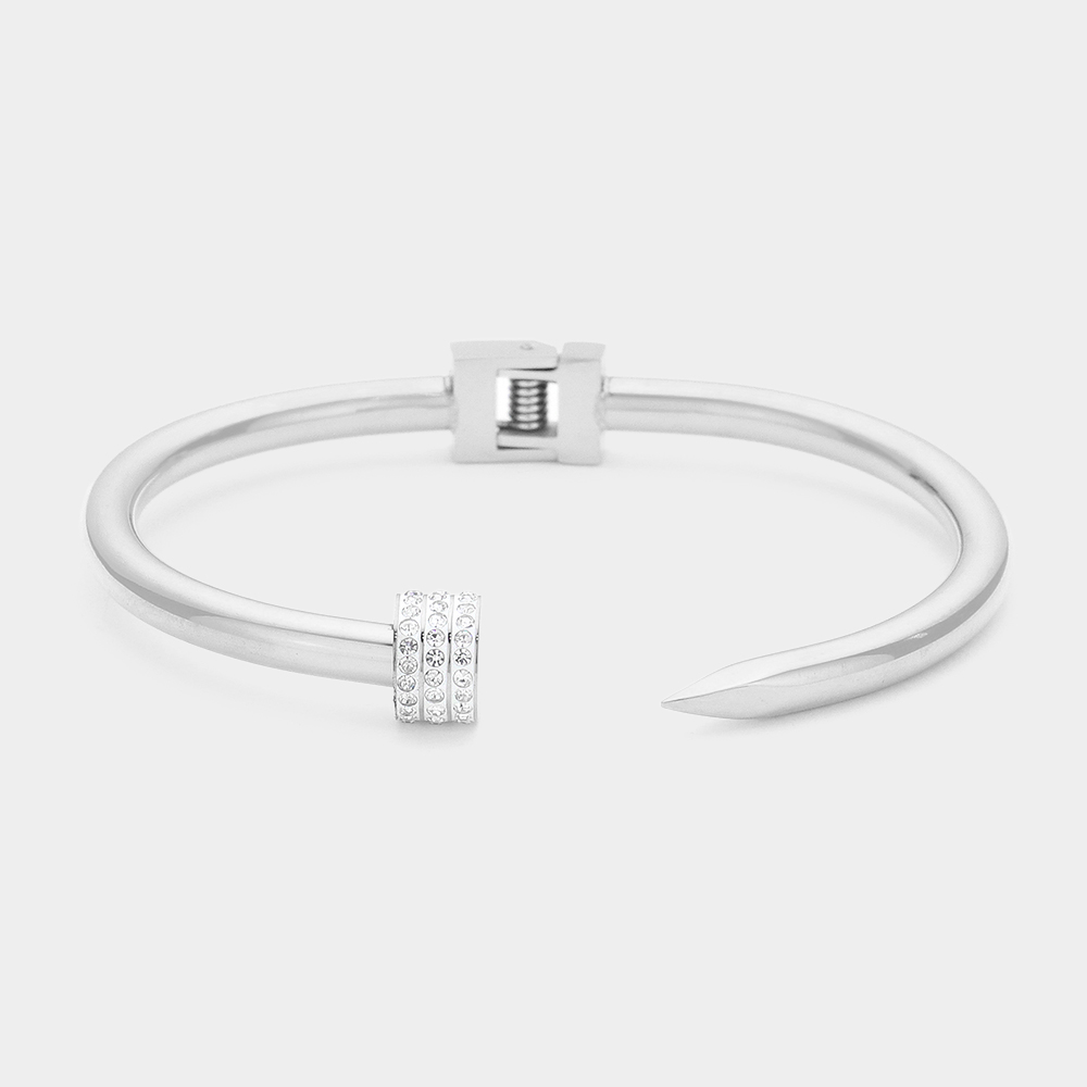 Stone Paved Tip Metal Nail Hinged Cuff Bracelet
