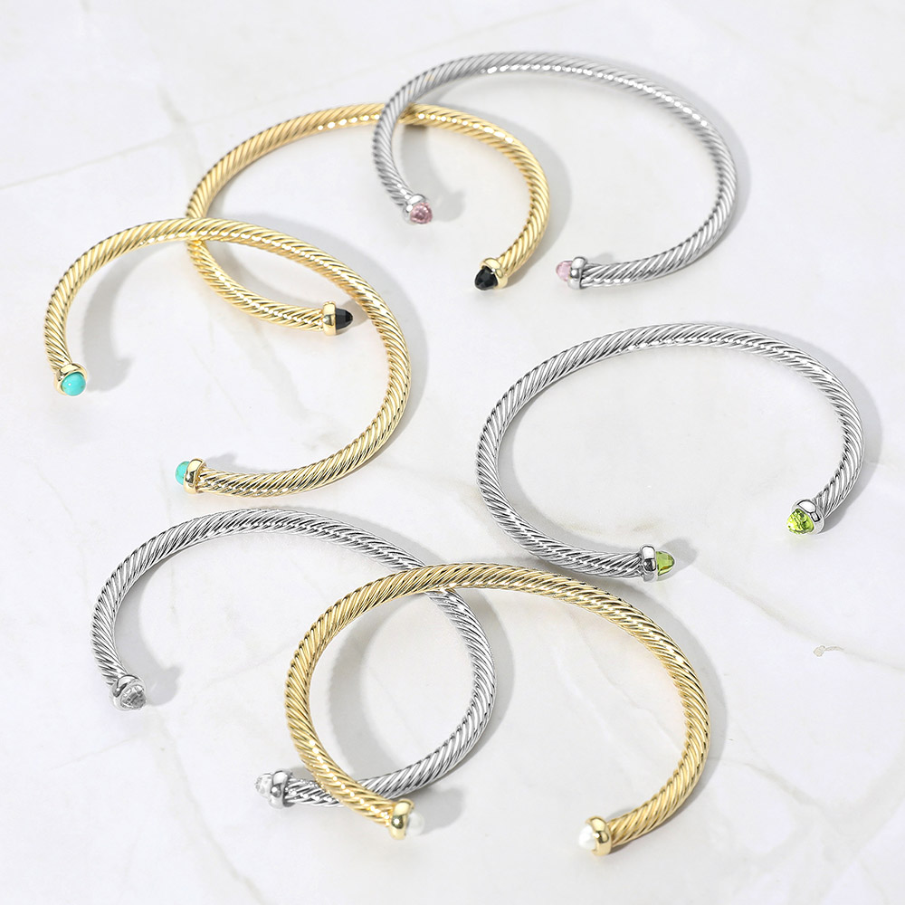 Stone Tip Twisted Cable Cuff Bracelet Stone Tip Twisted Cable Cuff Bracelet Stone Tip Twisted Cable Cuff Bracelet