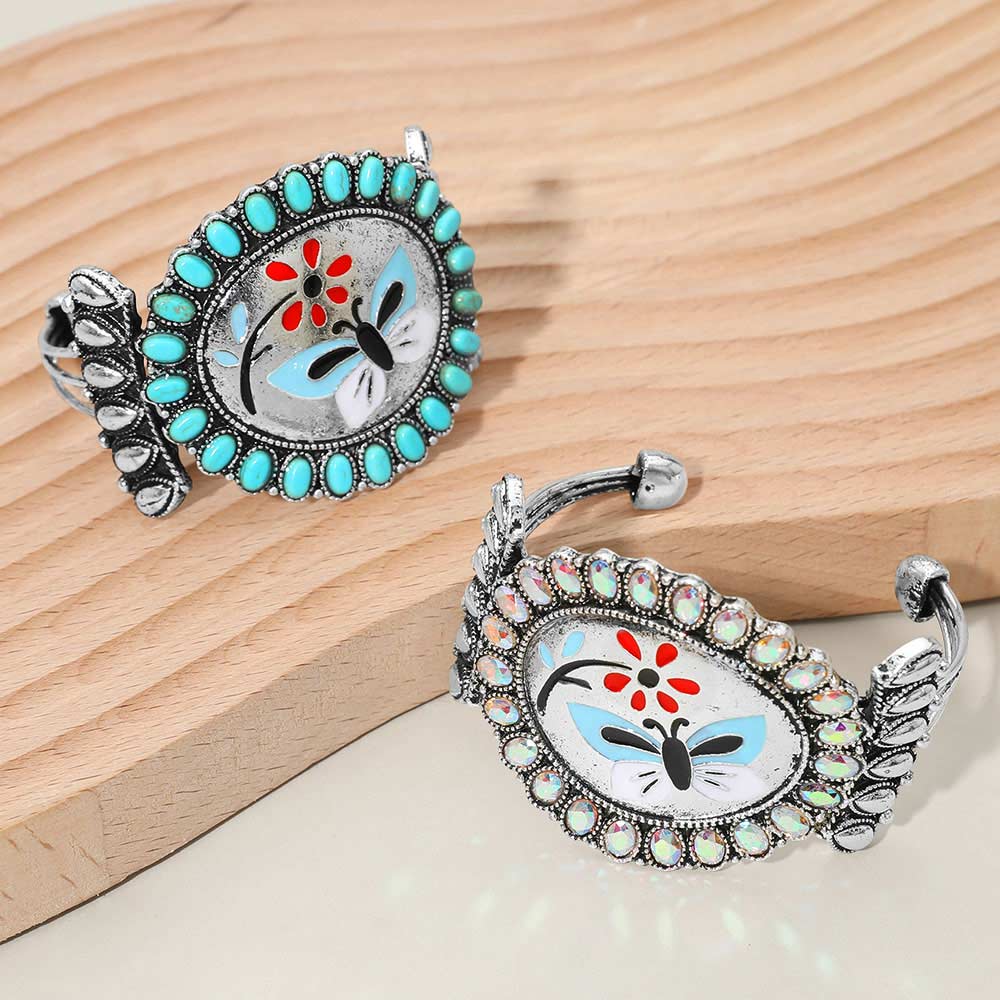 Western Oval Butterfly Flower Conch Cuff Bracelet