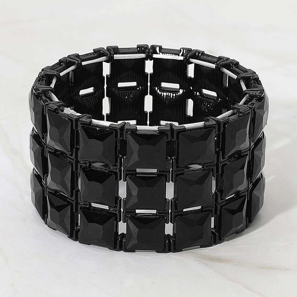 3-Rows Square Stone Stretch Evening Bracelet 3-Rows Square Stone Stretch Evening Bracelet