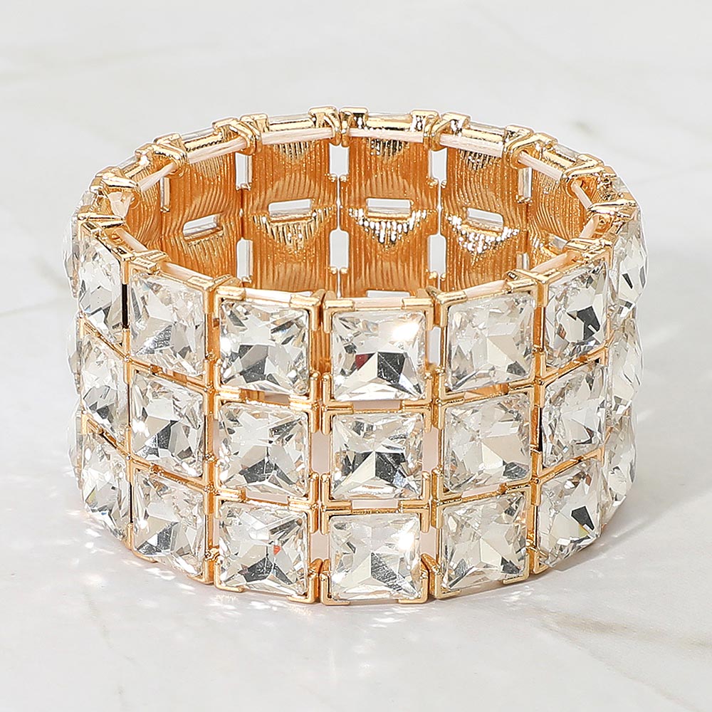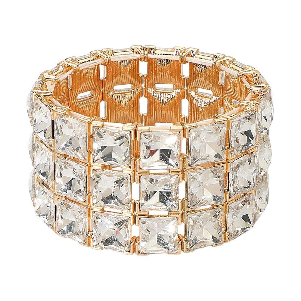 3-Rows Square Stone Stretch Evening Bracelet 3-Rows Square Stone Stretch Evening Bracelet