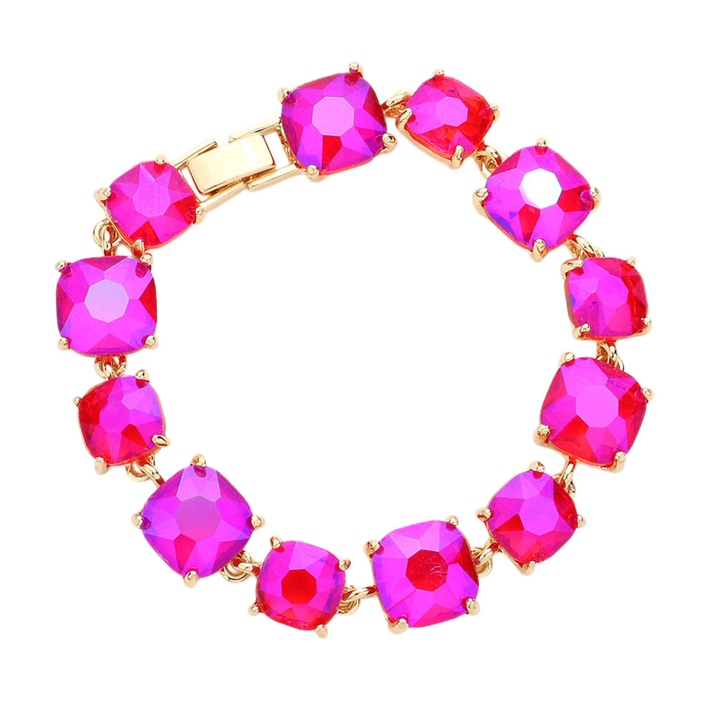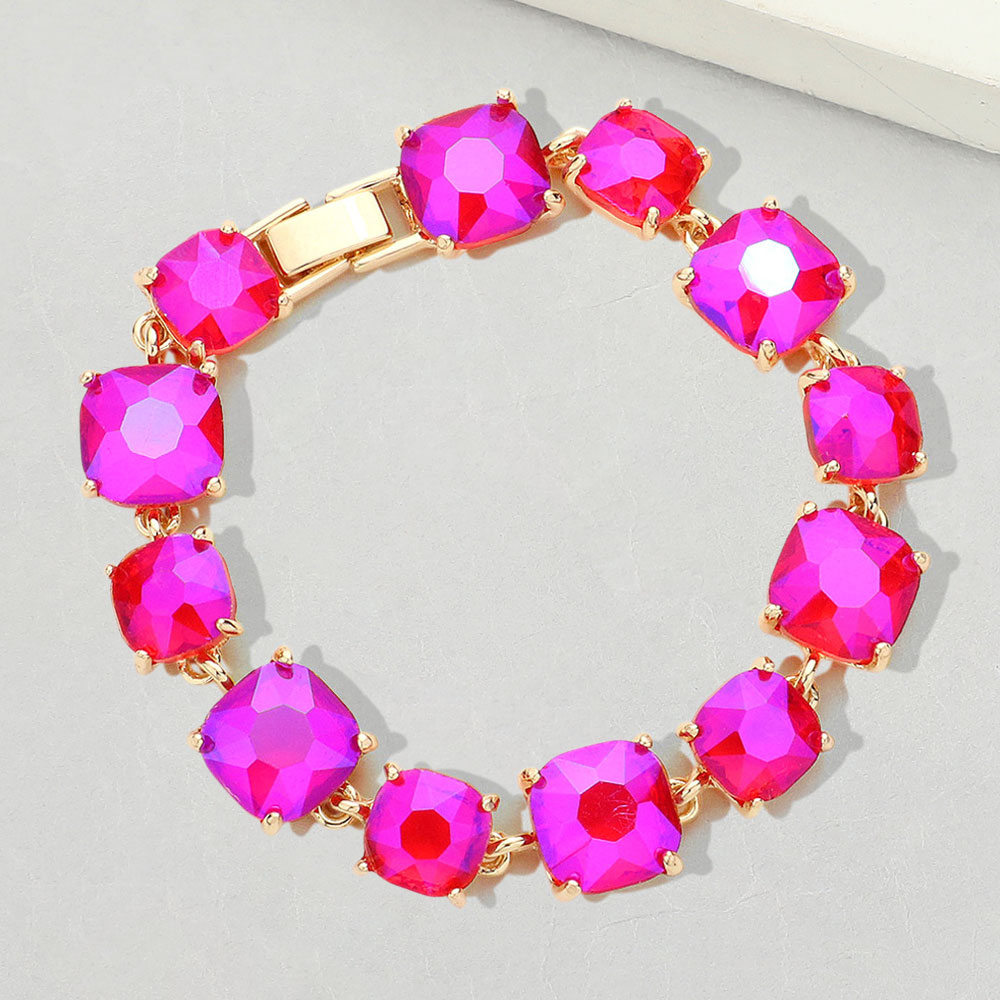 Details • Size : 0.5" H, 7.5" L • Fold Over Closure • Elegant bracelet featuring sparkling square-cut crystals with a vivid, reflective finish. Ideal for parties, weddings, or adding brilliance to formal looks. A radiant accessory that commands attention. • Lead and Nickel Compliant