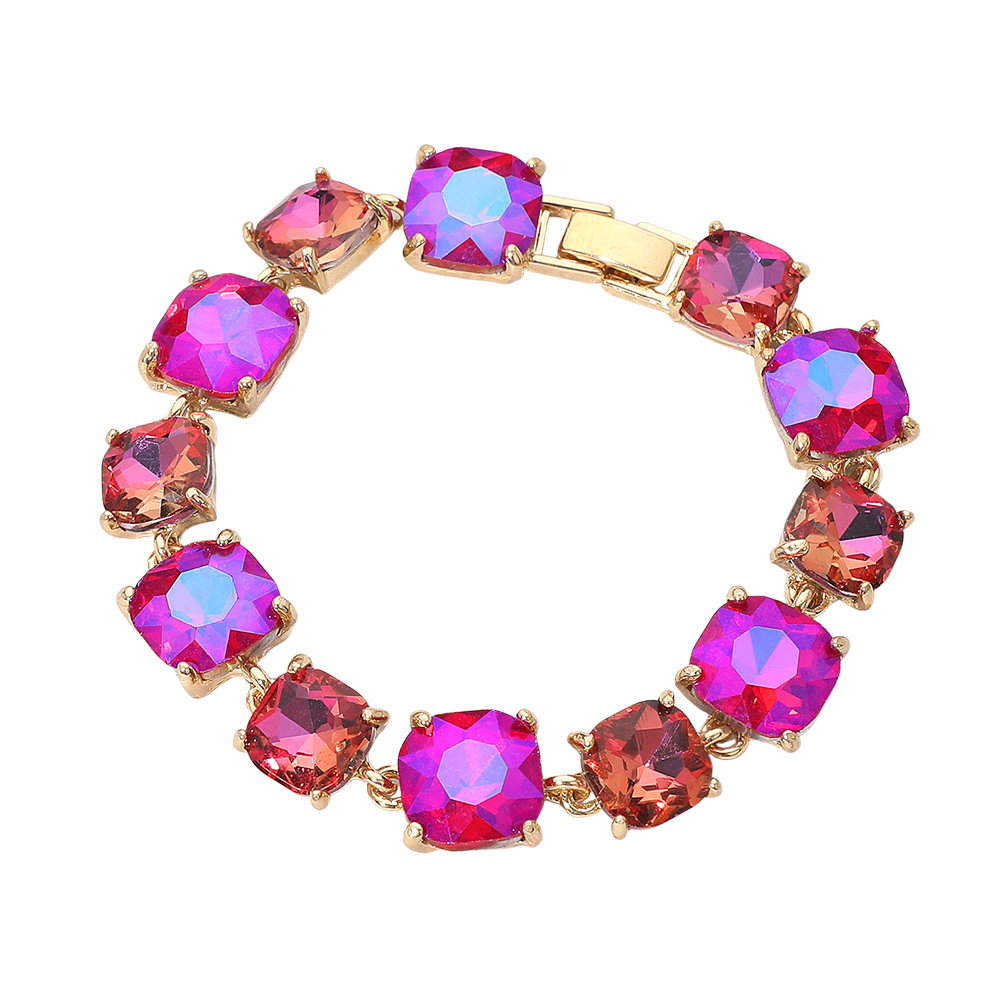• Elegant bracelet featuring sparkling square-cut crystals with a vivid, reflective finish. Ideal for parties, weddings, or adding brilliance to formal looks. A radiant accessory that commands attention.