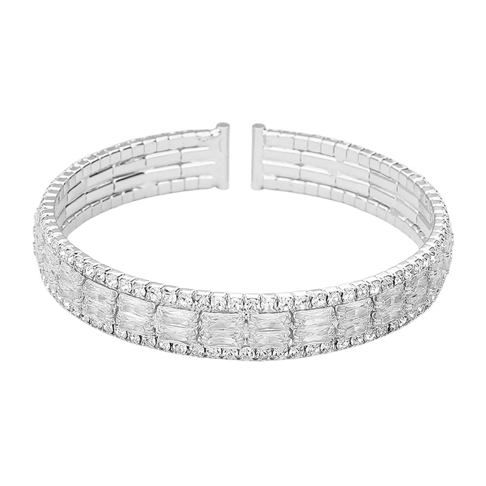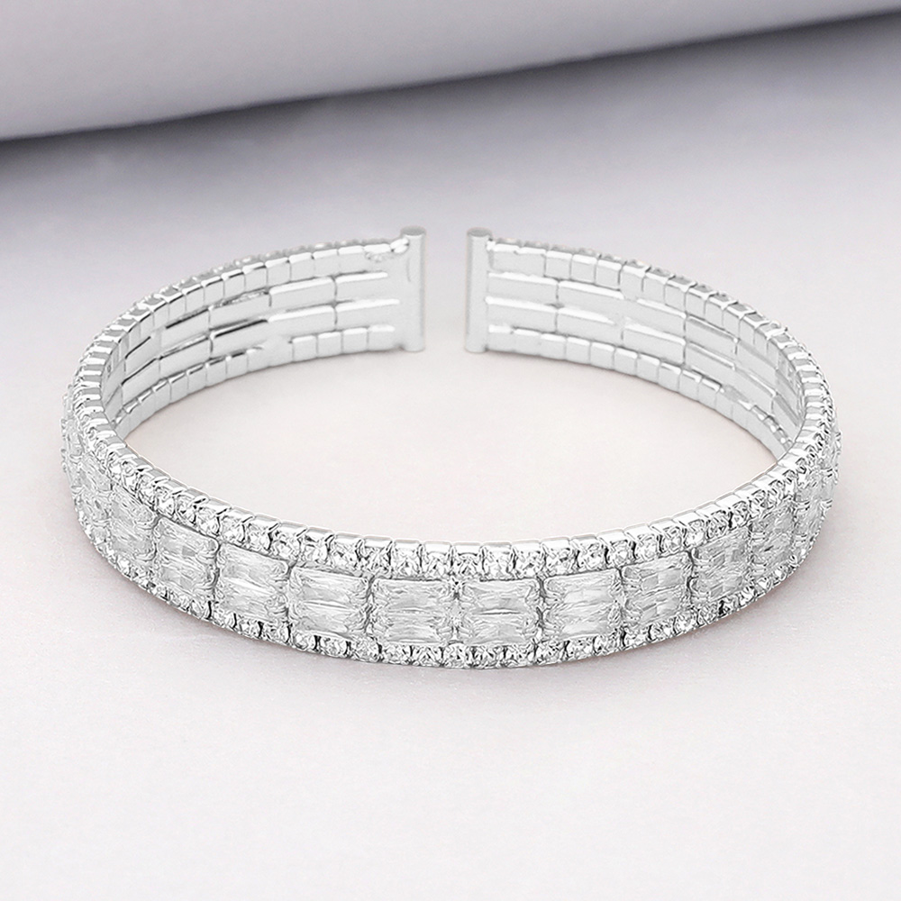 Glass Crystal Oval Stone Cluster Stretch Bracelet