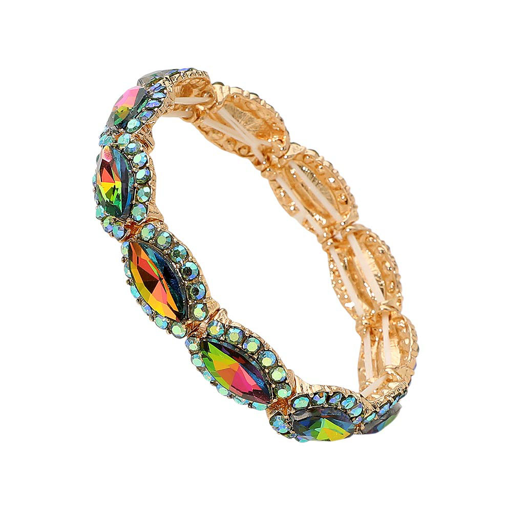 Faceted Marquise Cut Stone Beaded Stretch Evening Bracelet