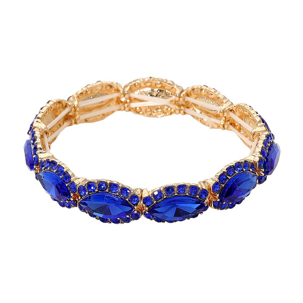 Faceted Marquise Cut Stone Beaded Stretch Evening Bracelet