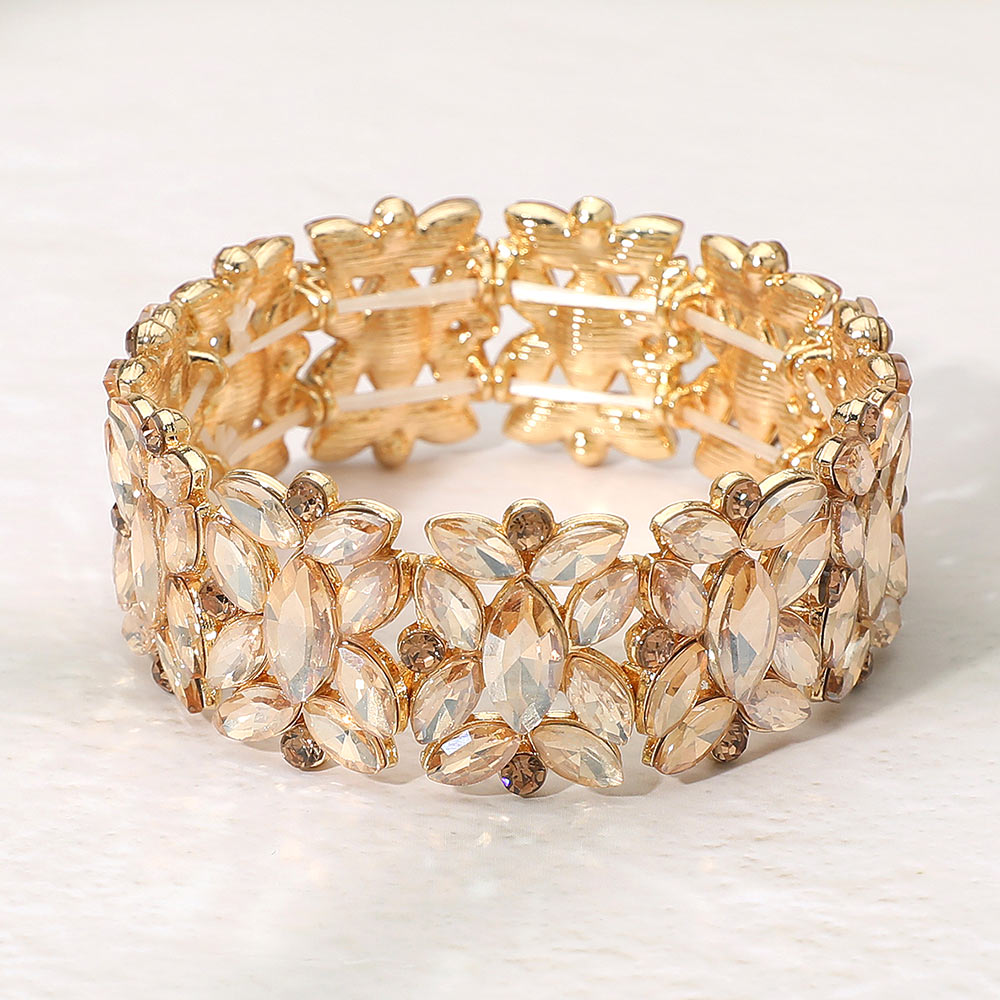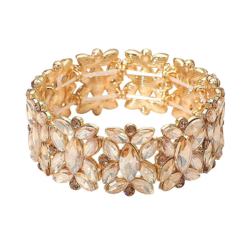 • A sparkling stretch bracelet with marquise floral crystal detailing designed for effortless elegance. Comfortable to slip on and perfect for parties, weddings, and formal events, adding radiant shine and a refined finishing touch to both evening and special-occasion looks.