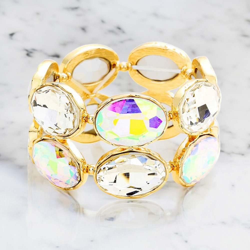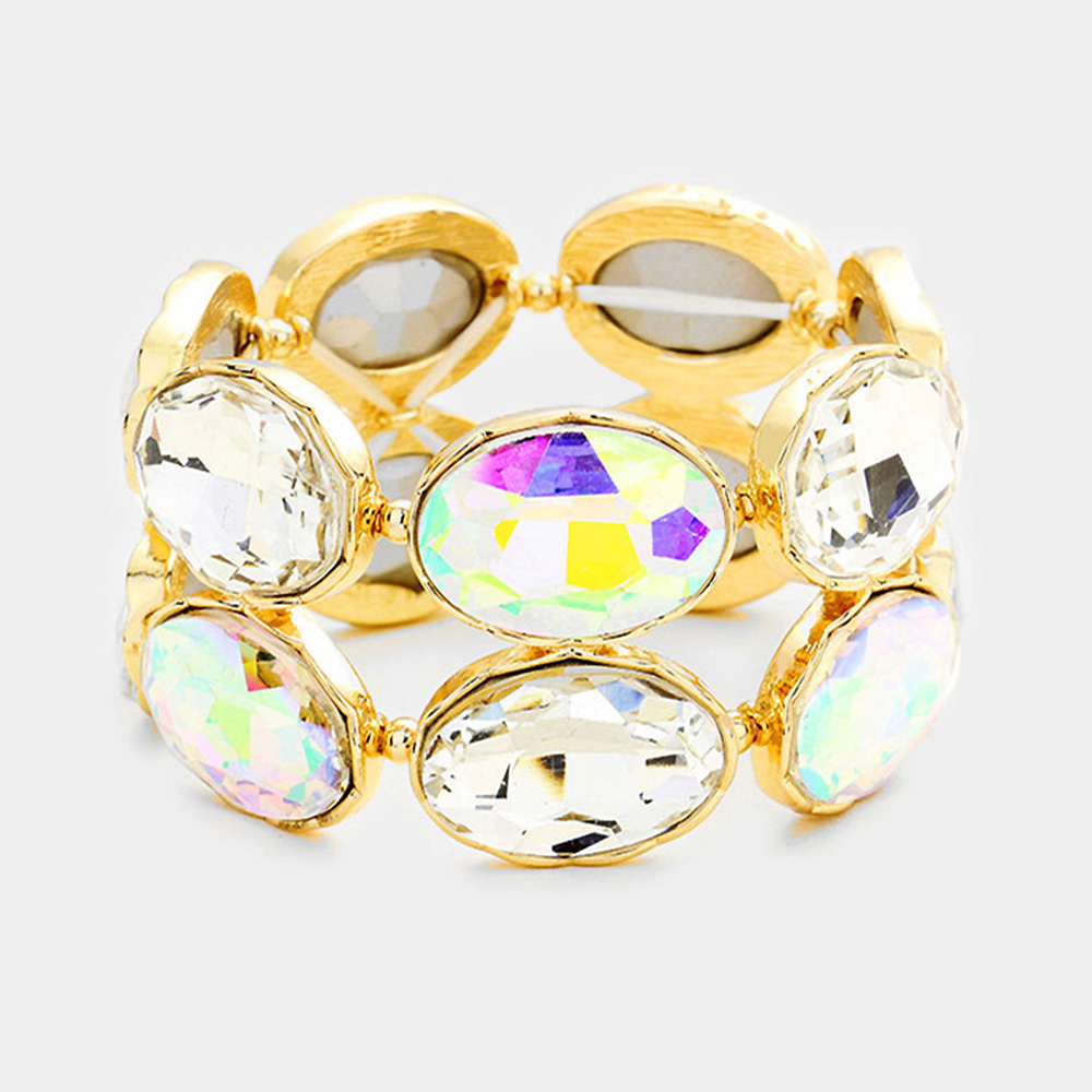 Triple Oval Glass Stone Drop Down Dangle Evening Earrings