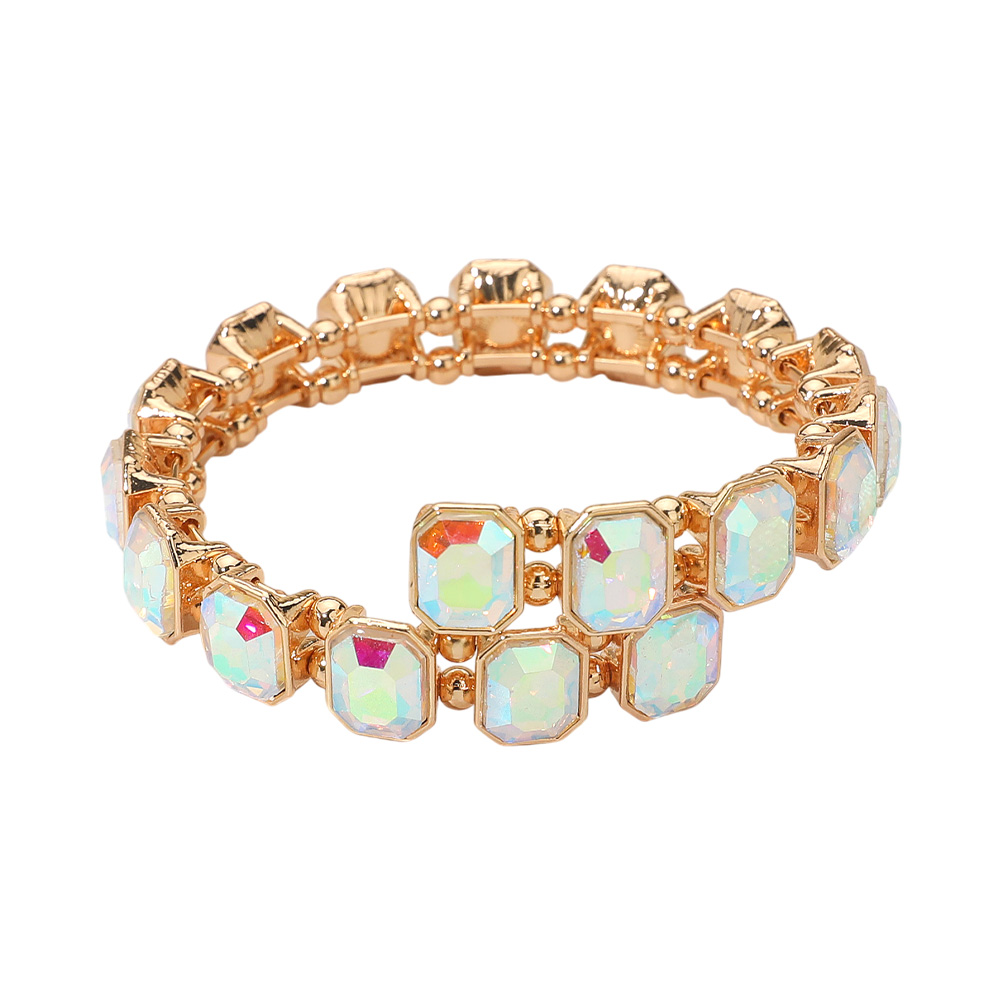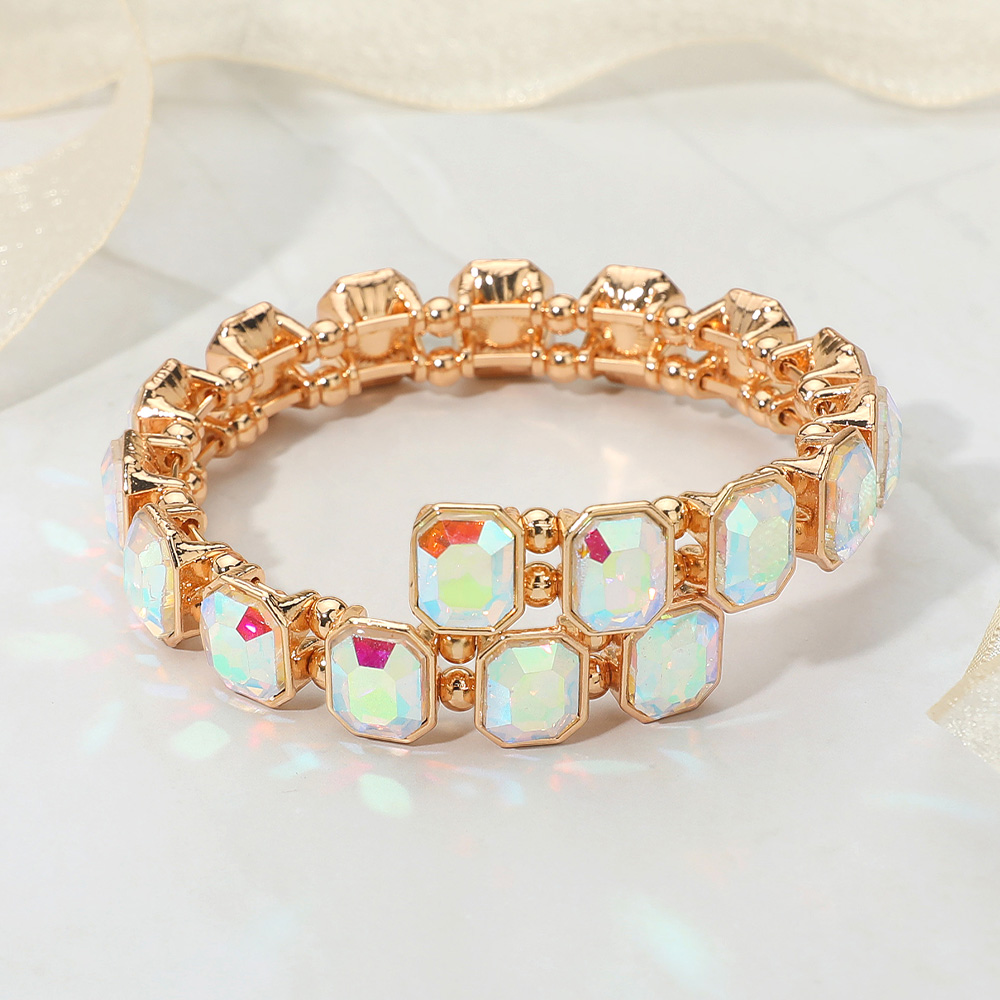 Glass Crystal Oval Round Stretch Evening Bracelet