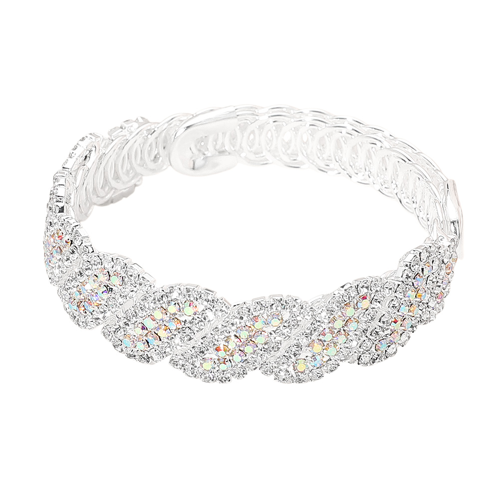 Details • Size : 0.5" H • Adjustable • Add timeless sparkle to your look with this elegant twisted crystal adjustable bracelet. Its intricate spiral design is adorned with shimmering stones that catch the light beautifully, while the flexible band ensures a perfect, comfortable fit for both special events and daily wear. • Lead and Nickel Compliant