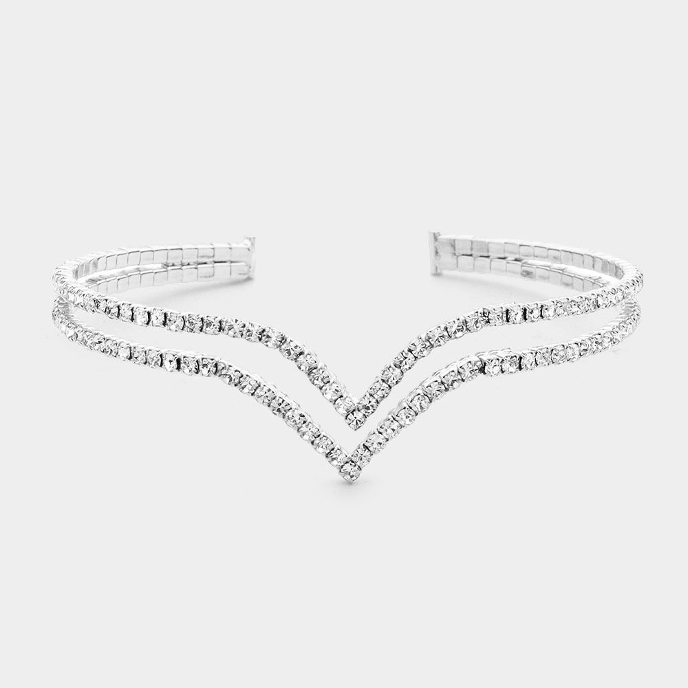 Double Teardrop Glass Crystal Stretch Evening Bracelet