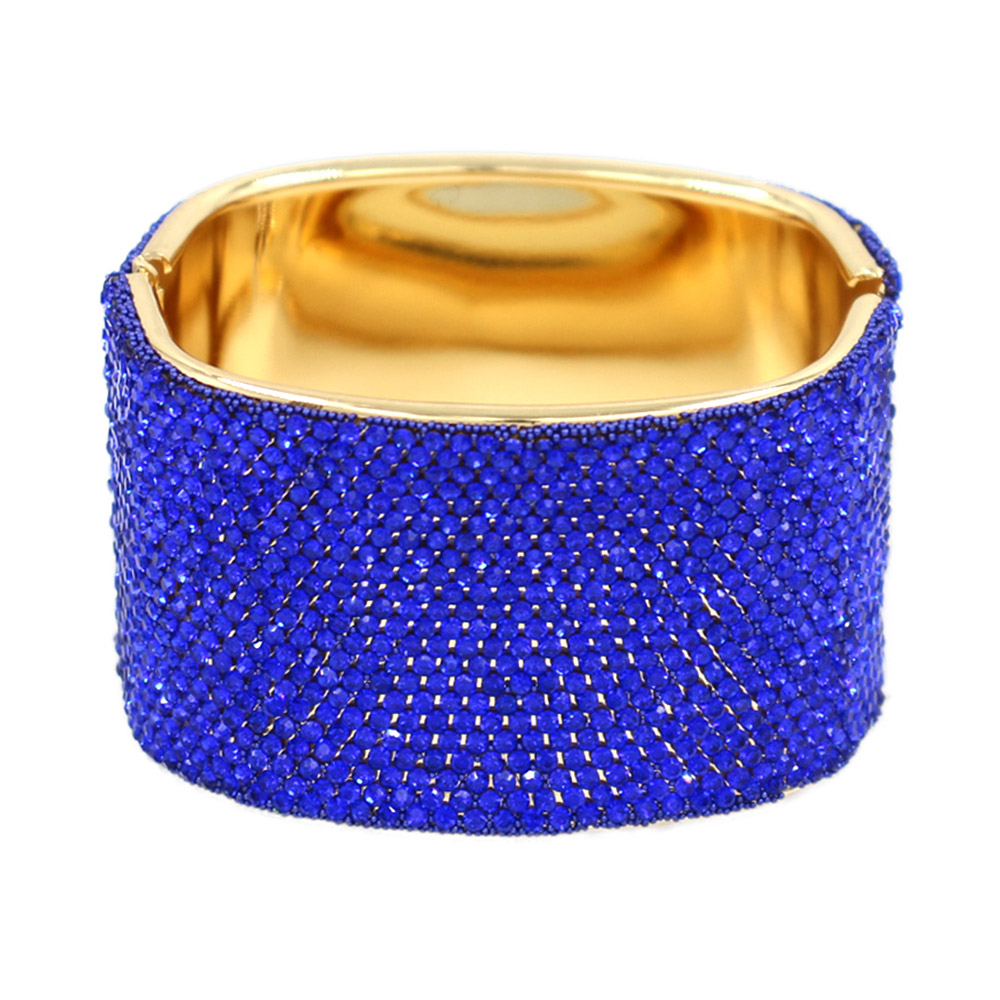 • Statement bangle bracelet featuring a bold, wide silhouette with a smooth interior and secure hinge closure. Designed to elevate evening looks, bridal styling, and special occasions, this bracelet delivers high-impact shine and a polished finish for confident, standout accessorizing.