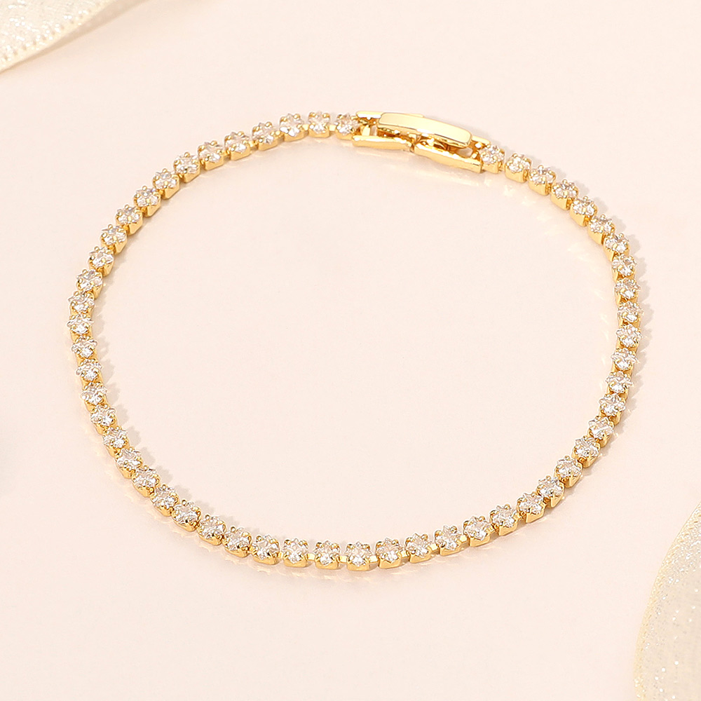 • Graceful and refined, this slim crystal tennis bracelet offers a touch of timeless brilliance. Its sleek, minimalist design enhances any outfit with subtle sparkle, making it perfect for everyday elegance or special occasions. A must-have accessory that complements any jewelry collection.