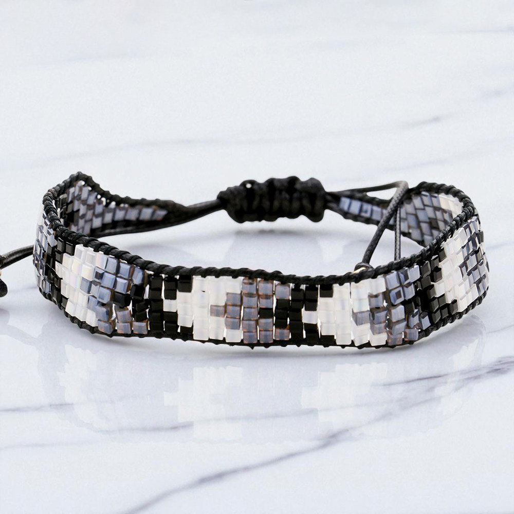 Chevron Pattern Cube Beaded Adjustable Cinch Pull Tie Bracelet