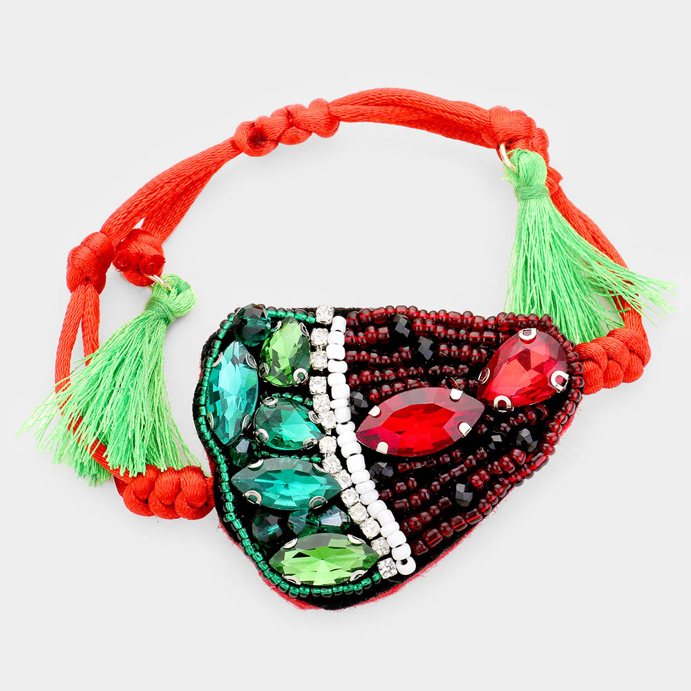 Crystal Bead Cluster Strawberry Tassel Adjustable Cinch Pull Tie Bracelet