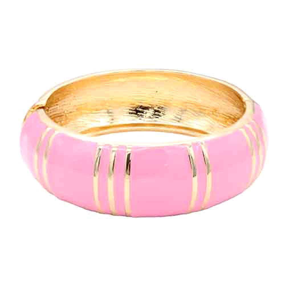 Enamel Striped Dome Hinged Bangle Bracelet