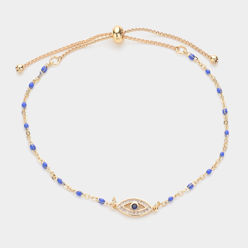 Evil Eye Pointed Beads Station Pull Tie Bracelet