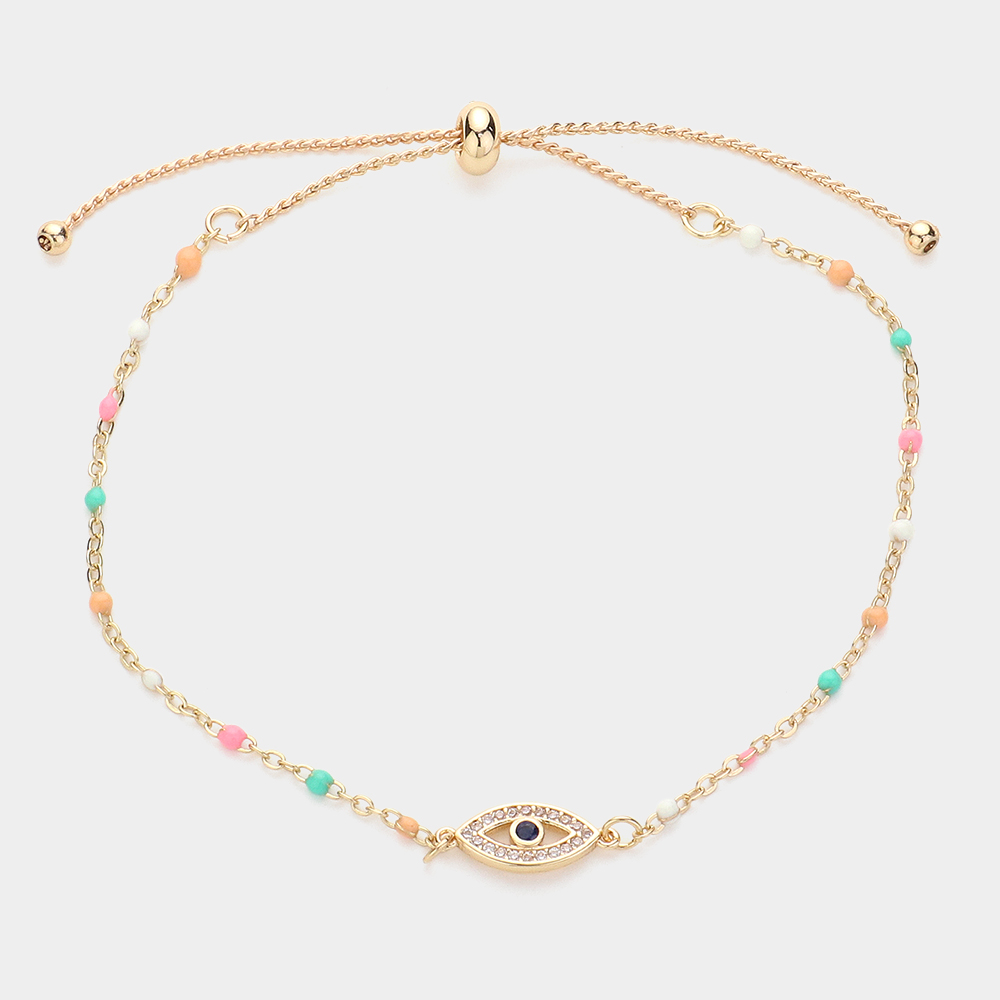 Enamel Evil Eye Adjustable Pull Tie Cinch Bracelet