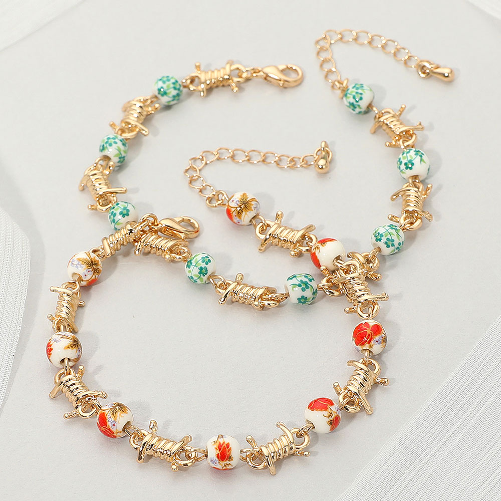 Floral Ceramic Ball Metal Rope Wrap Link Bracelet Floral Ceramic Ball Metal Rope Wrap Link Bracelet Floral Ceramic Ball Metal Rope Wrap Link Bracelet