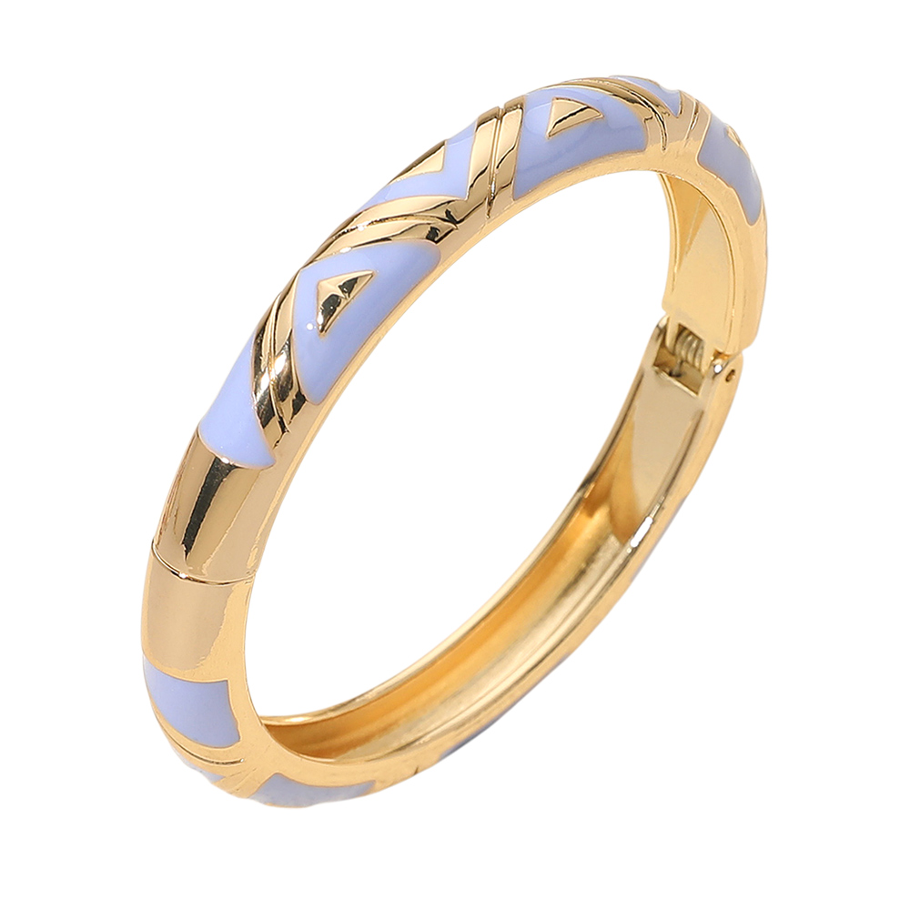 • Chic geometric hinged bangle bracelet featuring sleek enamel inlay and a polished metallic finish. Its modern pattern adds a stylish accent to any outfit, perfect for layering or wearing alone for an elegant statement. Ideal for both everyday wear and sophisticated occasions.