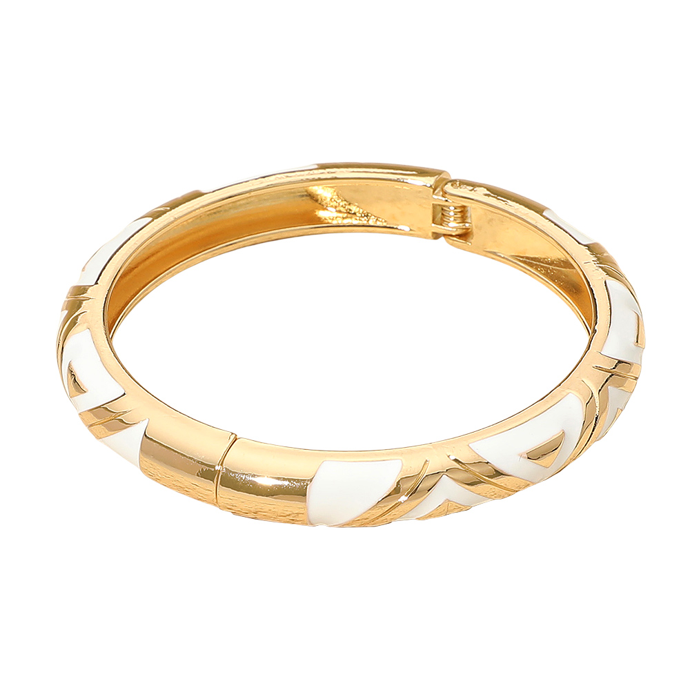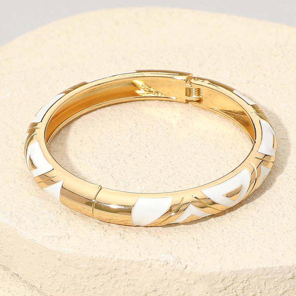 Geometric Pattern Enamel Inlay Hinged Bangle Bracelet