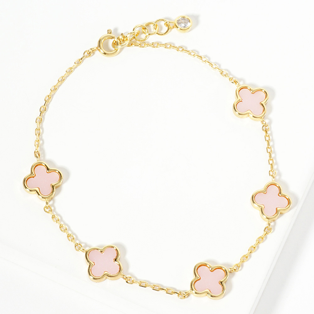 White Gold Dipped Mother Of Pearl Quatrefoil Station Bracelet