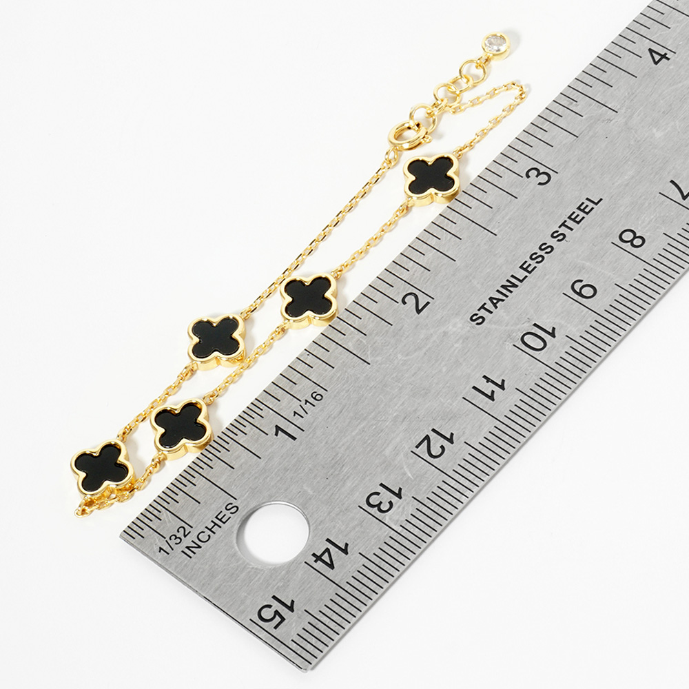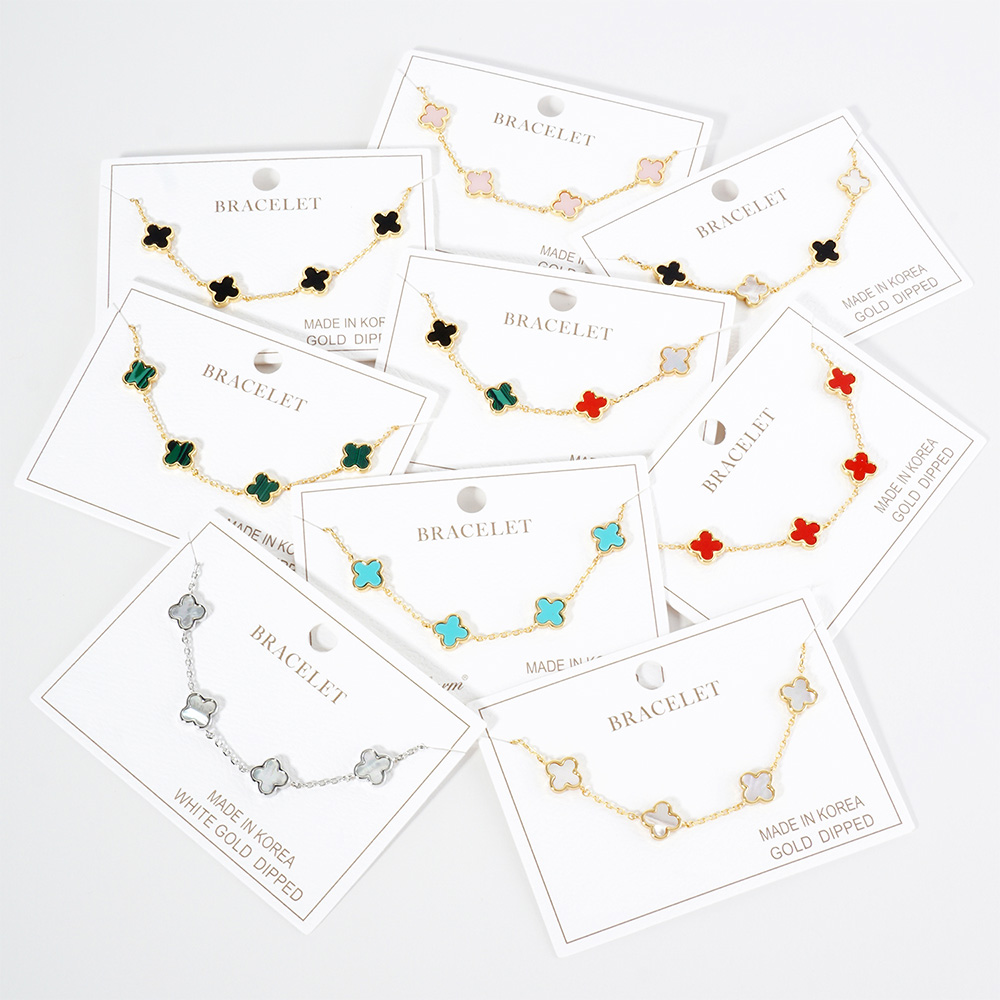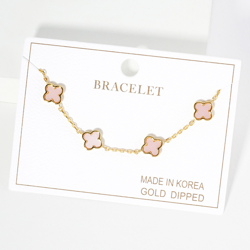 Gold Dipped Natural Stone Quatrefoil Station Bracelet