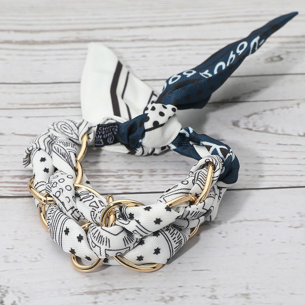 Metal Interlocking Ring Fabric Bandana Scarf Adjustable Bracelet