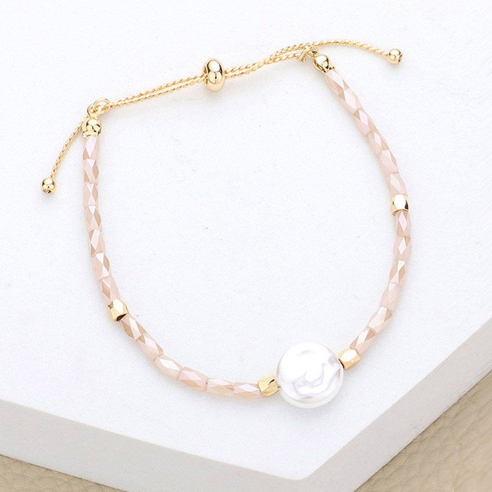 Pearl Accented Beaded Pull Tie Cinch Bracelet